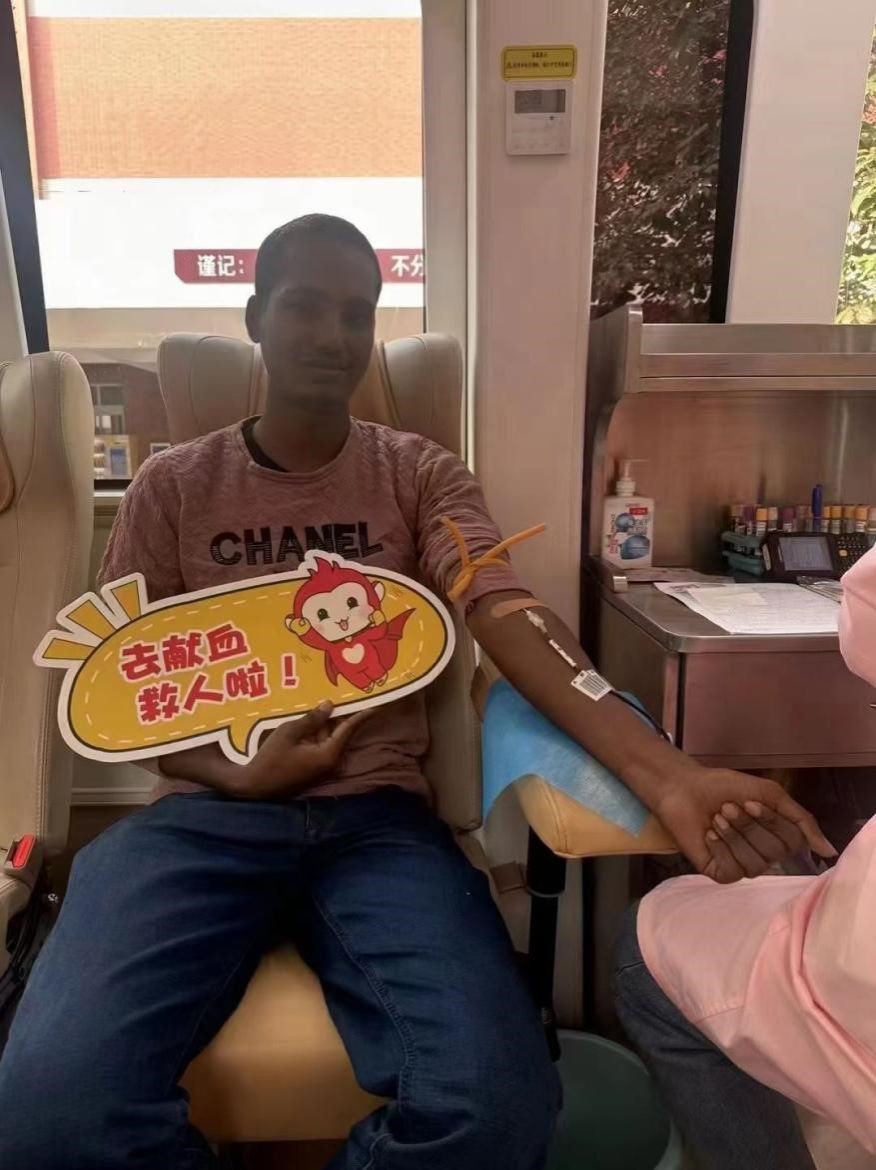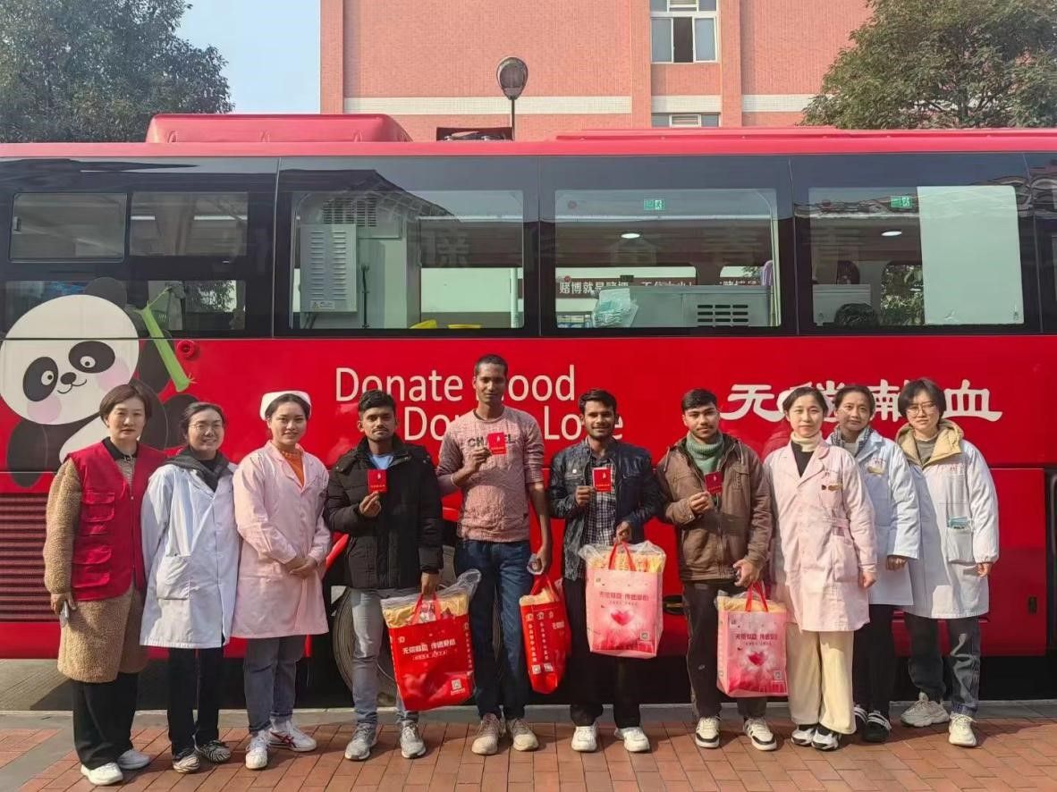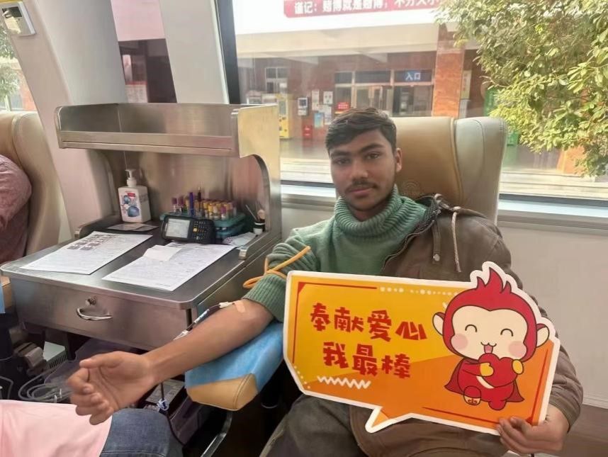 On December 14th, four students from Bangladesh at the International College voluntarily went to the mobile blood donation vehicle of the city's blood station, rolled up their sleeves, and donated blood for the Red Cross cause. Their borderless act of love received praise. Blood donation is a manifestation of dedication and love, saving lives and helping the injured, and its value cannot be measured in money. Blood donation is a great act of love, and the students have truly shown the real meaning of "love knows no borders" through their actions. Although we may not speak the same language and have different skin colors, our blood is the same. Thank you to every blood donor who gives selflessly.