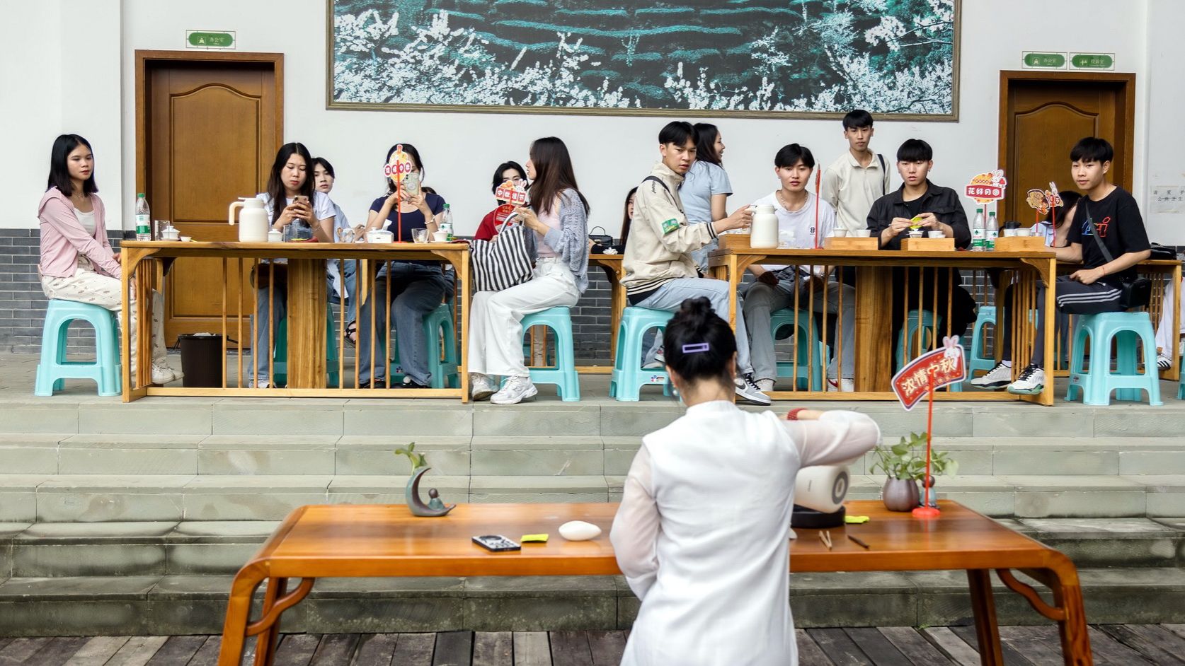 During the Mid-Autumn Festival, the school hosted a "Mid-Autumn Jia'e Tea Valley Cultural Experience Activity" for international students. The event aimed to allow 120 international students from different countries to deeply understand the charm of traditional Chinese culture and experience the profound cultural connotations and unique atmosphere of the Mid-Autumn Festival.