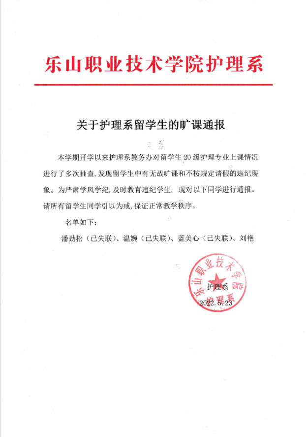 Next:Medical Department: Notification of Absenteeism Among International Students