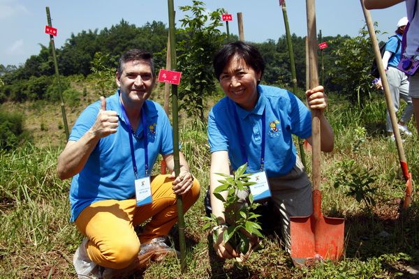 At 10:30 a.m., the participants arrived at the Golden Nan Valley Eco - Garden in Shoubao Township, Jianwei County, to plant trees in the "Roots - Seeking Forest." With affection, they planted golden nan saplings and hung nameplates with their names on them, leaving a beautiful memory for this journey.