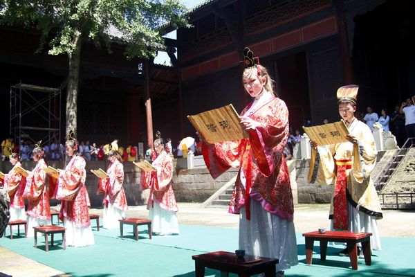 In the Dacheng Hall, the participants paid homage to the statue of Confucius and worshipped the sages with reverence.