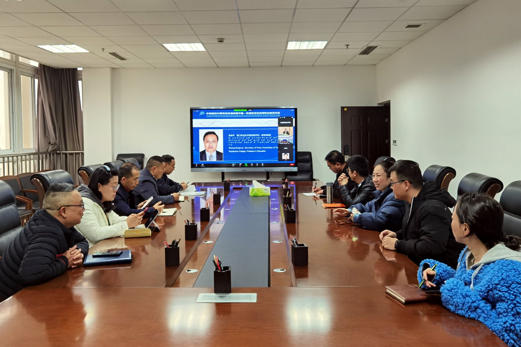 On the morning of November 29, the 60th Anniversary of China - Laos Diplomatic Relations and the 2021 China - ASEAN Education Exchange Week Vocational Education Forum was held in Tongren, Guizhou. Hundreds of leaders, experts, and scholars from China and foreign countries attended the event online and offline. Chen Xiaolu, Director of the Academic Affairs Office of Leshan Vocational and Technical College, Deputy Director Deng Panpan, deputy directors of various departments, and relevant staff members participated in the online meeting.