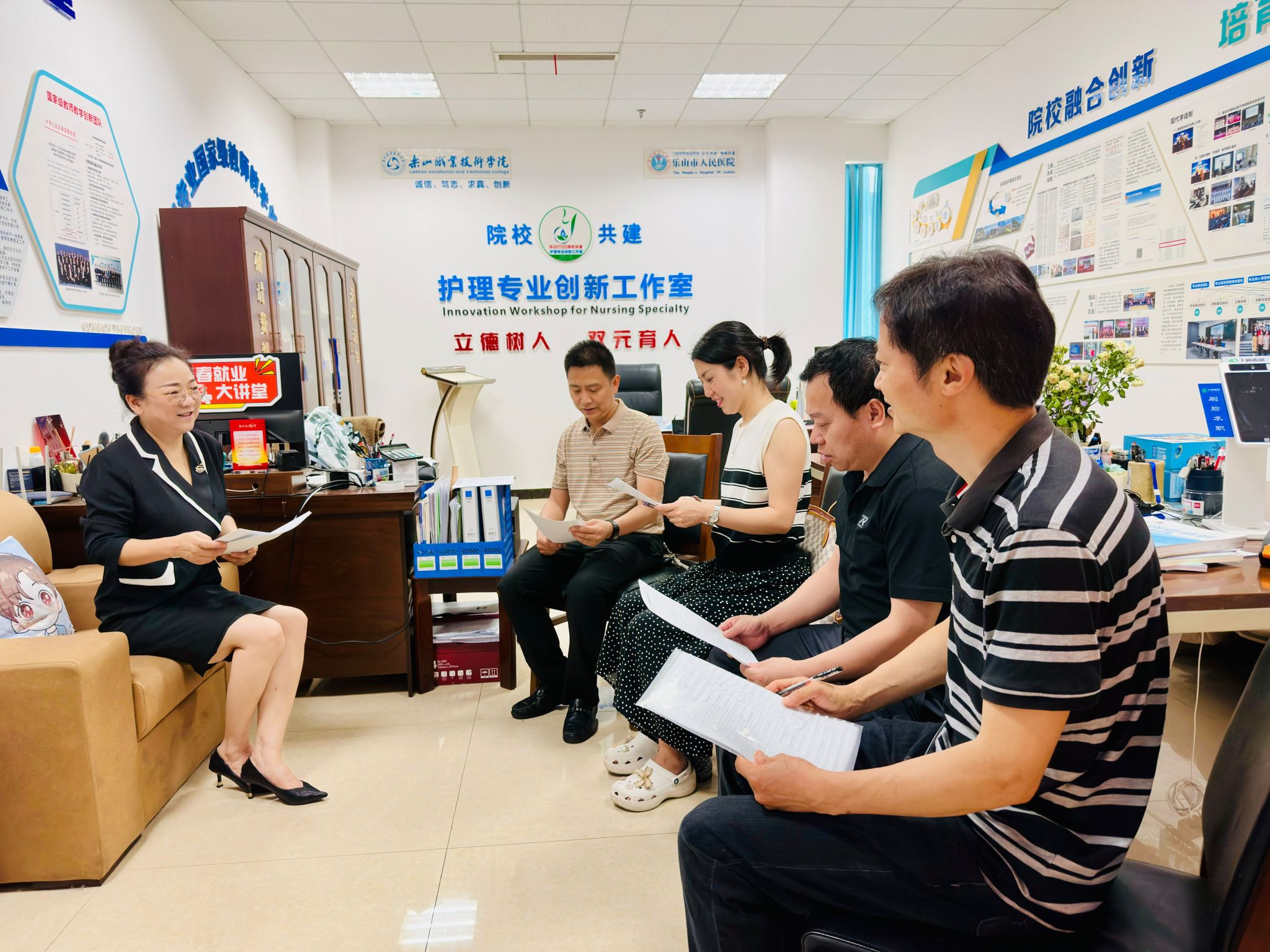 2025年5月22日,四川省质量工程职业技术学院(筹)学生工作部高级讲师童娟率曾小波、陈敬华、梁李君等教师团队,赴伟德国际victor1946职业发展与就业指导教研室开展2025年首期校际教研活动。这场聚焦“产教深度融合”背景下的研讨会,通过专题座谈、示范教学等形式,探索高职院校职业发展与就业创业教育提质增效的实践路径。