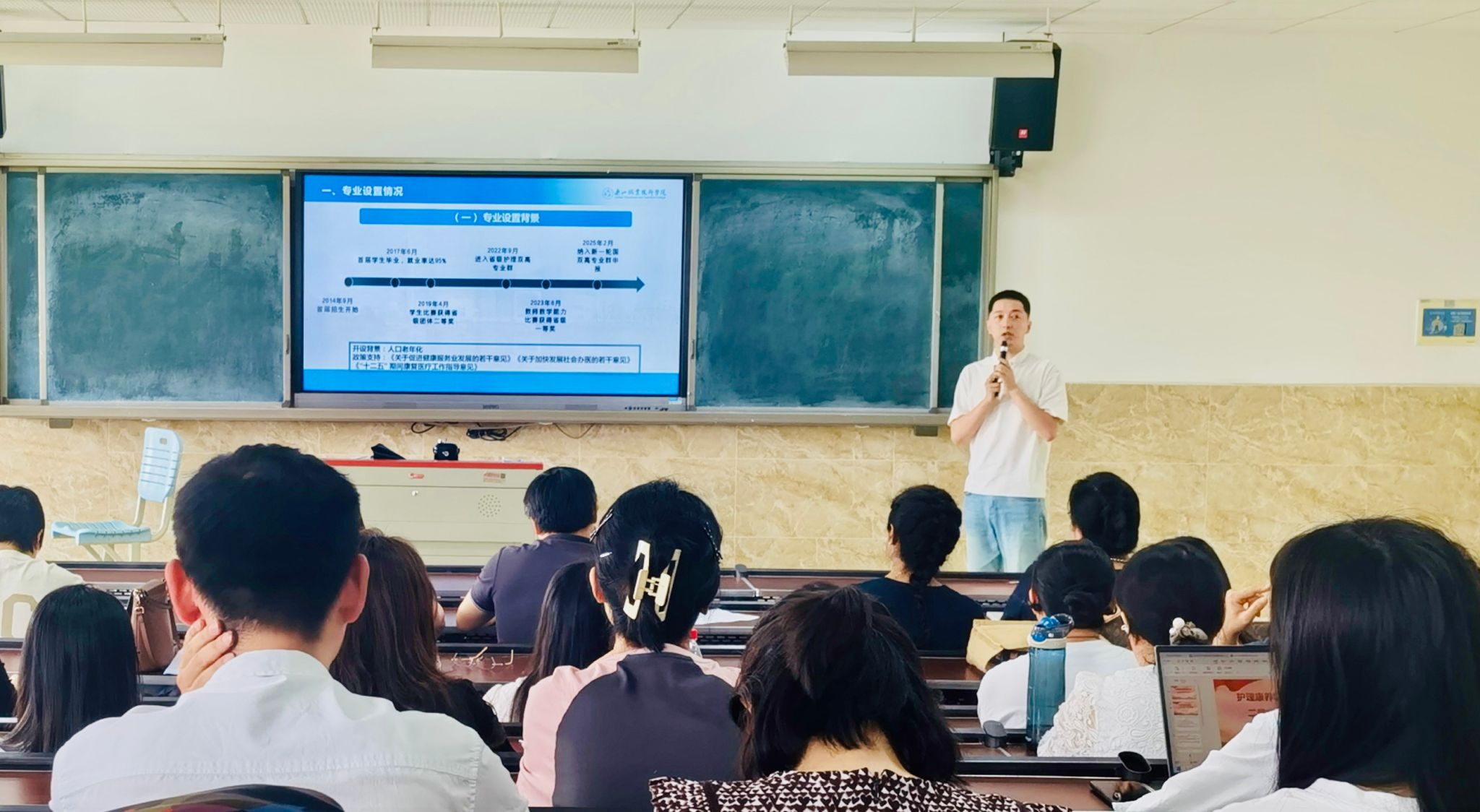 “强专业必先强教师”。为筑牢职业教育高质量发展基石,伟德国际victor1946护理康养学院精心打造的“医路成长”教师能力提升系列项目持续发力。6月25日,我院2025年第二期培训于教学楼2C302成功举办,全院教职员工齐聚一堂,在副院长张磊的主持下,共同开启了一场聚焦教学示范与专业深化的能力淬炼之旅。