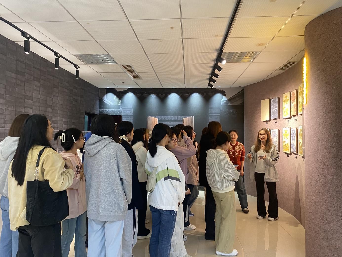 活动现场布置极具文化韵味,一幅幅色彩艳丽、构图饱满的夹江年画精品错落陈列。从寓意吉祥如意的《福娃送喜》,到展现巴蜀民俗风情的《连年有余》,再到承载农耕文化记忆的经典纹样,生动的图案、浓郁的地域特色与厚重的历史底蕴,瞬间将同学们带入夹江年画的文化沉浸氛围,直观感受这项“南桃北柳夹江符”美誉背后的艺术价值。学院学生解说员化身“非遗文化传播者”,围绕夹江年画的起源脉络、民俗寓意、工艺特点展开生动讲解。他们结合陈列展品,条理清晰地拆解木版雕刻、宣纸拓印、手工填色等核心工序,分享年画中吉祥符号的文化内涵,更通过图文结合的方式,让同学们快速掌握基础创作技巧。