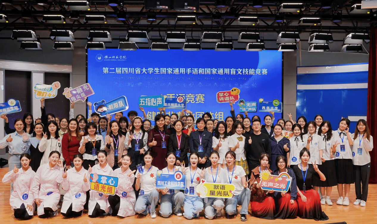 2025 年10月18日,第二届四川省大学生国家通用手语和国家通用盲文技能竞赛顺利举办并圆满落幕。本次赛事竞争激烈,吸引全省多所高校的 28 支参赛队伍同台竞技,充分展现各高校在特殊语言技能培养领域的成果。其中,护理康养学院组建的 “掌心诉语” 团队表现突出 —— 在李姝环、熊乾琳两位教师的悉心指导下,团队成员黄馨、李婷、傅诗雨、汪诗琪凭借扎实的手语功底与稳定的现场表现力,从 28 支队伍中脱颖而出,最终荣获大赛非专业组三等奖。