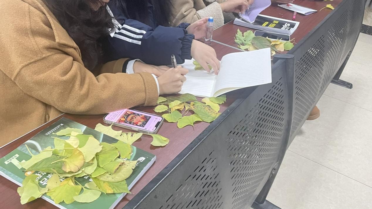 活动正式开启后,同学们手持精心收集的落叶全身心投入创作。有的凝神构思,细细打磨作品主题;有的专注裁剪、拼接叶片,让落叶在指尖重焕生机;还有的围坐交流创作技巧,分享巧思与灵感。现场氛围温馨又热烈,同学们相互交流创作思路、分享手工诀窍,原本散落的落叶经巧手雕琢,化作一件件饱含温度与创意的艺术作品。