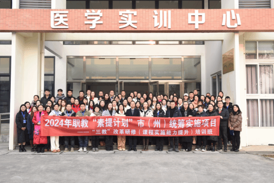 2025 年 1 月 3 日,乐山市教育局 2024 年职教 “素提计划” 市(州)统筹实施项目 ——“三教” 改革研修(课程实施能力提升)培训班开班仪式在伟德国际victor1946 1 号实训楼举行。乐山市教育局相关负责人、学校党委副书记、工会主席张佳,护理康养学院领导、工作坊指导老师、项目班主任及来自乐山市 17 所中职学校的 68 名参训学员参加仪式。