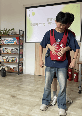 培训现场,孟赞老师以“理论+实操”的形式,用通俗易懂的语言讲解气道异物梗阻的危害与高发场景—从儿童误食坚果、果冻,到老人进食时呛咳,再到成人突发异物卡喉,每一种情况都可能危及生命,而海姆立克急救法正是应对此类危机的“救命技能”。孟赞老师一边示范成人海姆立克急救法的标准动作,一边拆解关键步骤,特别强调了“位置要准、力度要稳、频率要快”的核心要点。