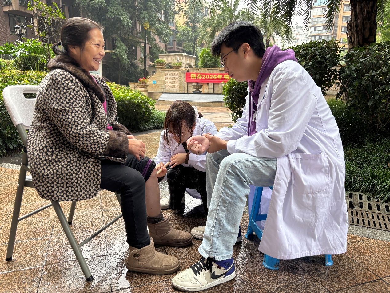 2025年11月7日9时00分至12时00分,护理康养学院在西岸第一城举办了“送健康送温暖,关爱社区在义诊”公益活动。此次活动由王竹、杨庆两位老师及12名志愿者共同参与。