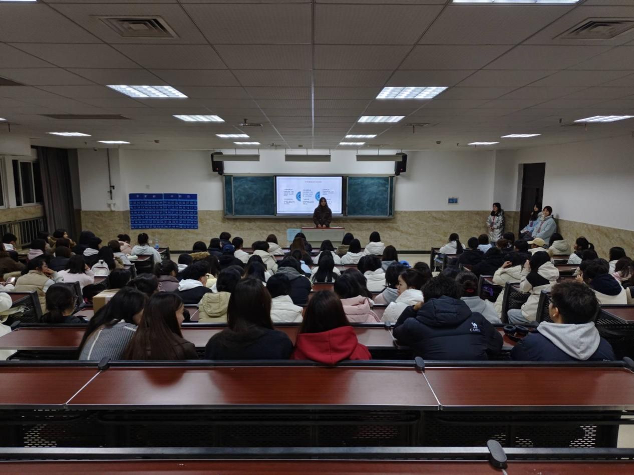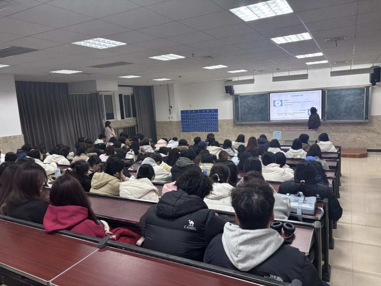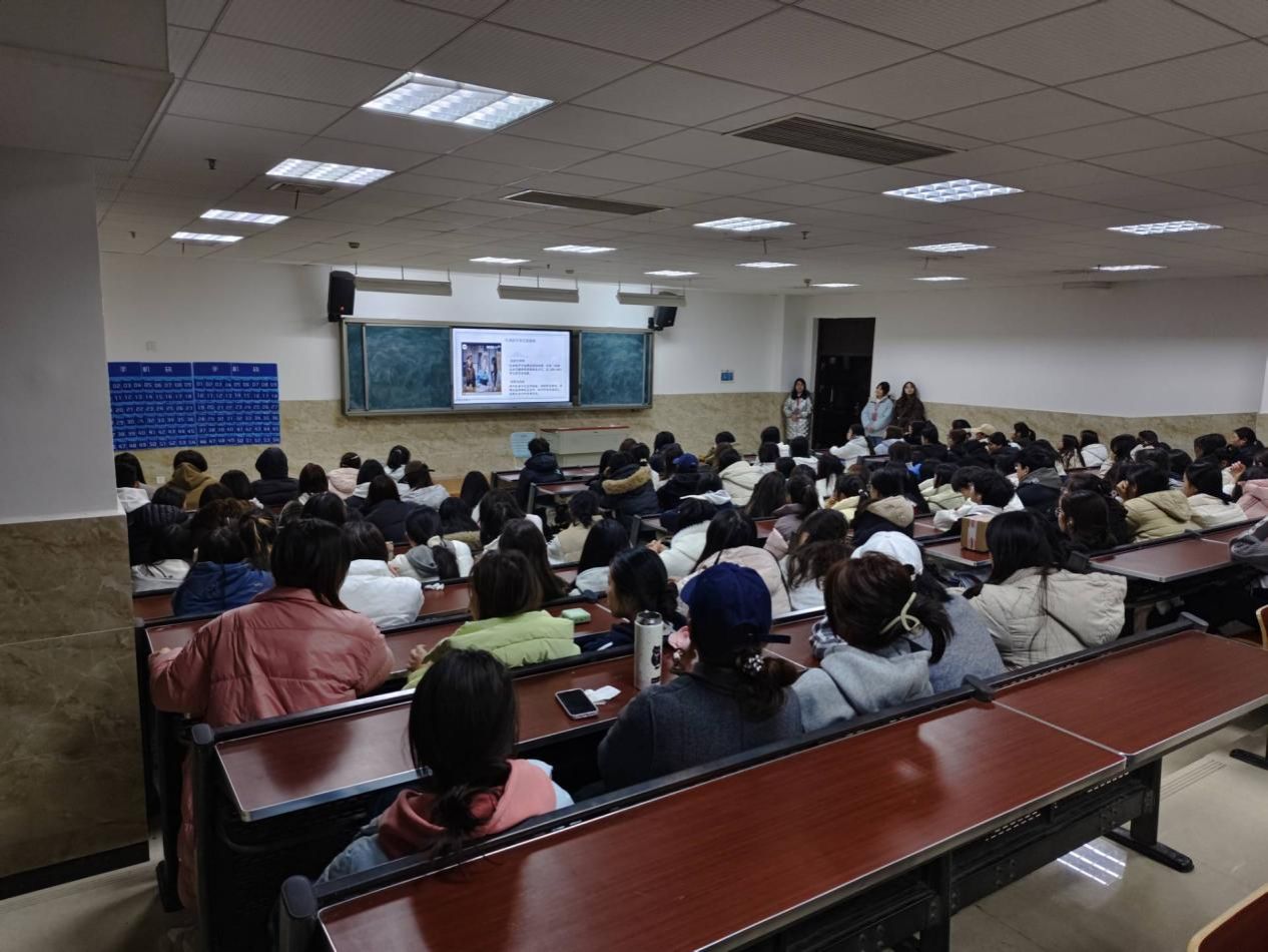 活动伊始,主讲人以“什么是扎染”为切入点发起提问,引发在场同学的思考与互动,不少同学结合自身有限的认知主动作答。随后,主讲人进一步询问同学们了解扎染的途径,现场同学积极分享,提及短视频平台、课本、非遗展览等渠道,亦有同学表示此次是首次接触这一传统非遗技艺。为让同学们深入了解扎染文化,主讲人借助PPT课件与非遗传承主题视频,系统讲解了扎染的历史渊源、地域流派及核心工艺,帮助同学们对扎染这一非遗项目形成了具象且深入的认知。