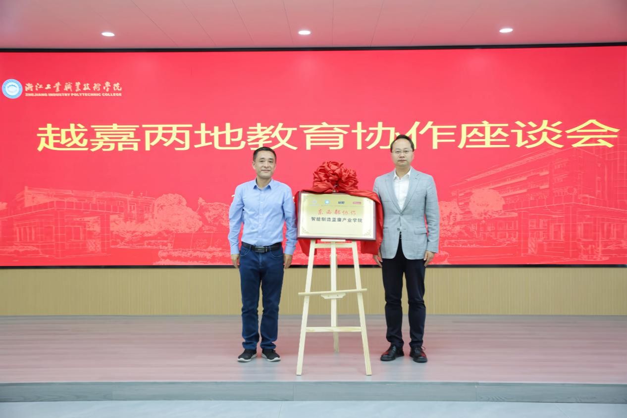 会上举行了“智能制造蓝鹰产业学院”揭牌仪式。伟德国际victor1946党委副书记、工会主席张佳,浙江工业职业技术学院党委委员、副校长林克伟,参与揭牌。
