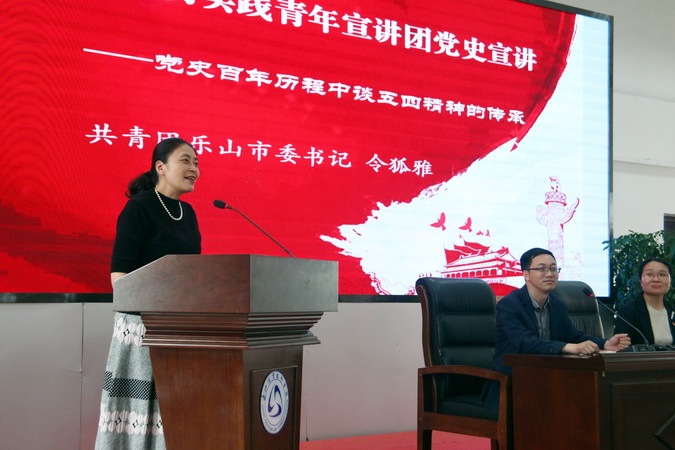 为深入学习习近平总书记重要讲话精神,庆祝“五四”青年节,学院邀请共青团乐山市委书记令狐雅走进学院青江思政大讲堂,围绕《党史百年历程中谈五四精神的传承》主题为学院“青马工程”培训班的学员和教师代表共200余名师生开展党史学习教育专题宣讲。