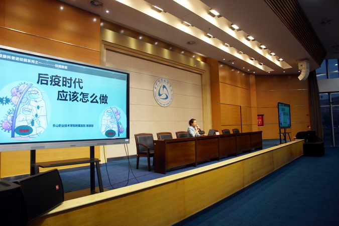 开班仪式后,附属医院护理部主任陈丽蓉为同学们上了第一堂课《后疫情时代应该怎么做》,她详细地讲解了当下疫情防控的意义和各种疫情防控知识,她生动的讲解,热烈的现场互动,引起同学们的阵阵掌声。通过本次讲座,同学们不仅掌握了疫情防控相关知识,更重要的是提升了大家的防控意识。