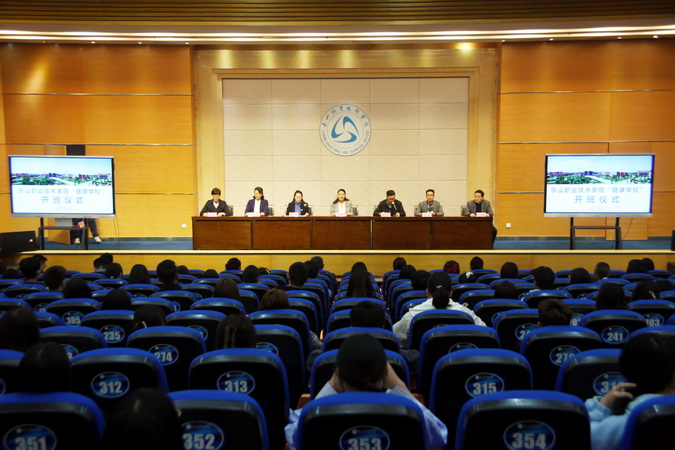 2021年4月19日晚,伟德国际victor1946“健康学校”开班仪式在图书馆学术报告厅举行,学院党委为同学们准备的“健康大礼包”开始派送。学院党委书记易群,党委委员、副院长鲍学东,学院团委书记黄泓轲、附属医院党总支书记曹卫平及附院班子成员出席了开班仪式,学院党委宣传部全体人员及首期200余名学生参加了仪式,开班仪式由鲍学东主持。