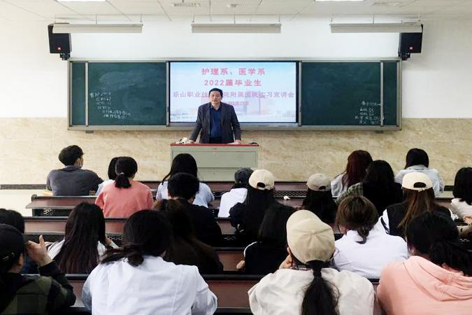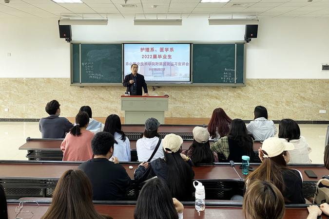 为推进2022届医护专业毕业生实习工作,3月17日下午,医护系邀请附属医院相关负责人,在教学楼2C302召开了“伟德国际victor1946附属医院实习宣讲会”。护理系党总支书记郑平、附属医院副院长刘剑锋、护理部主任陈丽蓉、医务科科长许岚到会并作宣讲,医护系顶岗实习管理干事曾川及2022届毕业班级班长、学习委员和有意向前往附属医院实习的同学参加了会议。