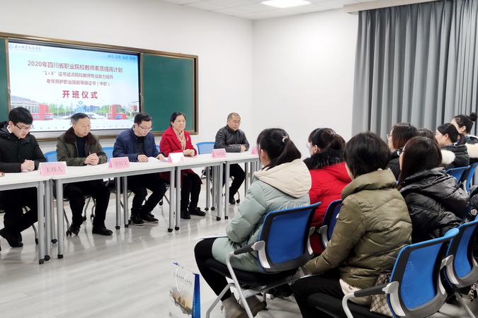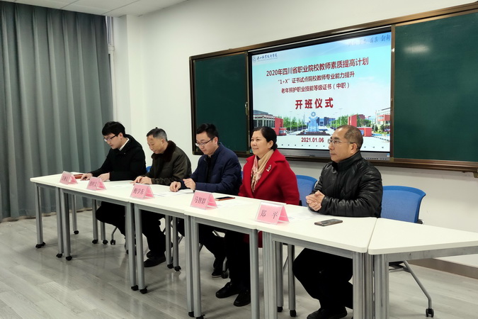 1月6日上午,国培项目“1+X证书试点院校教师专业能力提升”之“老年照护职业技能等级证书(中职)培训”开班仪式,在伟德国际victor1946教师发展中心举行,学院副院长鲍学东出席并致辞。乐山市人民医院工会主席、科教部部长、护理专业带头人、国家级职业教育教师教学创新团队负责人马智群,护理系党总支书记郑平、医护系主任谯时文,本次培训的授课教师以及全体参训学员参加了开班仪式。开班仪式由学院人事处副处长周书来主持。