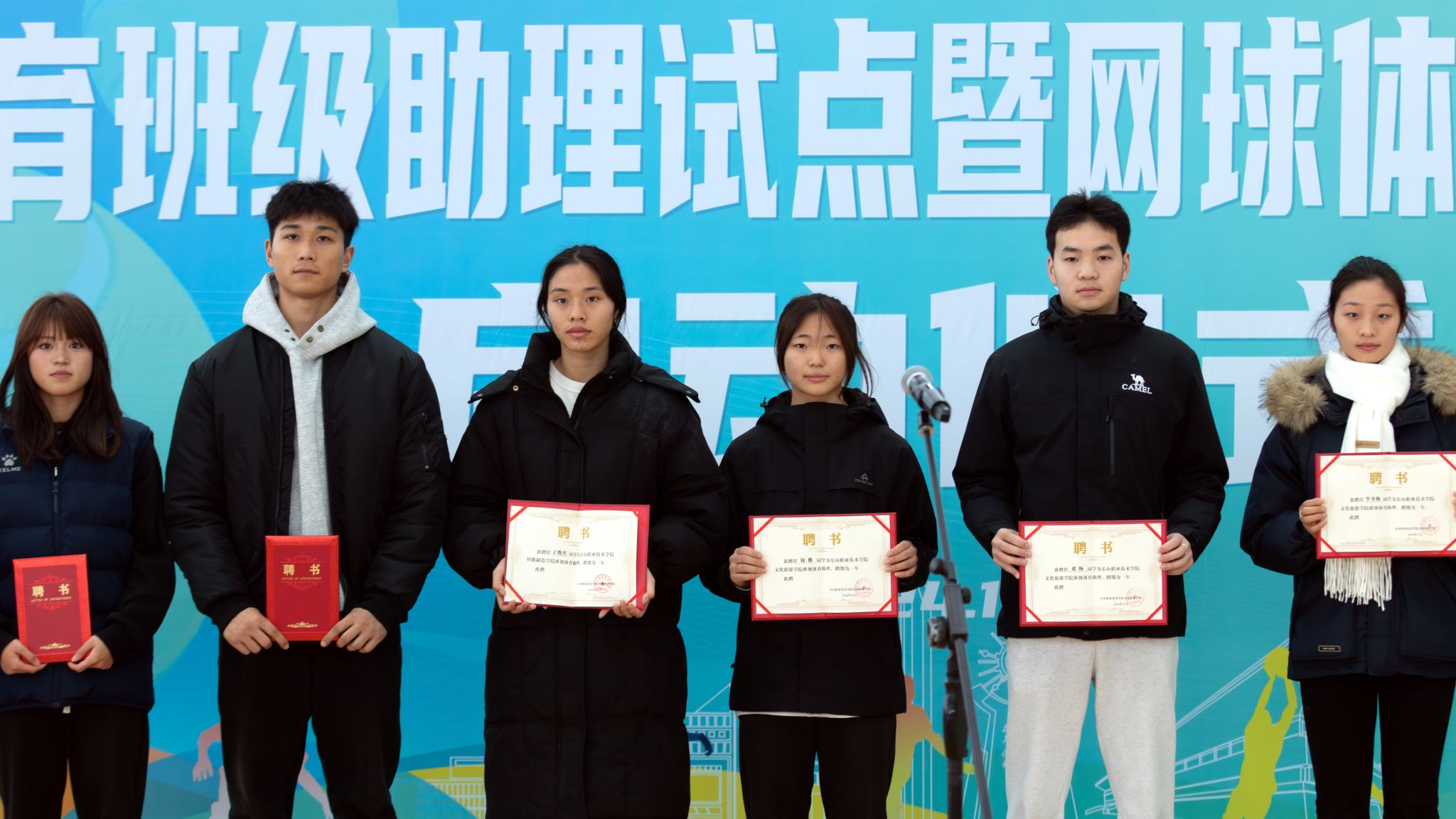 仪式上,颁发了“体育班级助理”聘书,“体育班级助理”代表作了发言。素质教育学院介绍了网球体验活动的具体安排和注意事项。