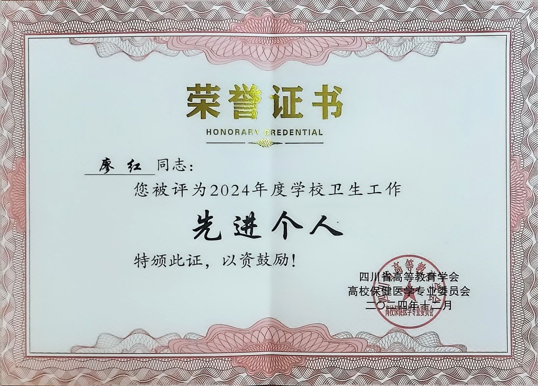 近日,四川省高等教育学会高校保健医学专业委员会对四川大学、电子科技大学等全省29所高校授予“2024年度学校卫生工作先进单位”,并对32名“2024年度学校卫生工作先进个人”予以表彰。伟德国际victor1946荣获“2024年度学校卫生工作先进单位”,廖红荣获“2024年度学校卫生工作先进个人”。