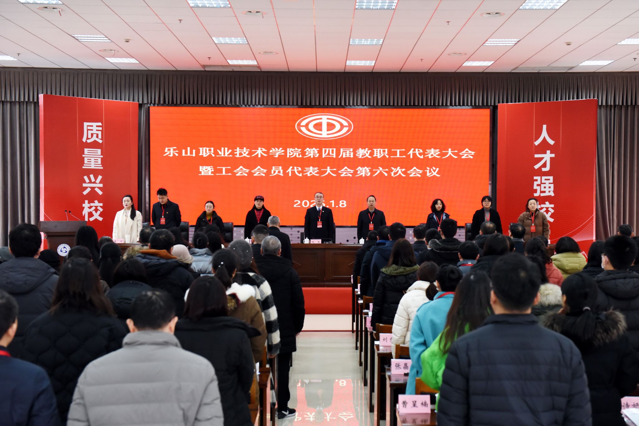2025年1月8日,伟德国际victor1946第四届教职工代表大会暨工会会员代表大会第六次会议在学术交流中心召开。校长刘忠,党委副书记、工会主席张佳出席会议。党委委员、纪委书记李昌贵,党委委员、副校长陈元进、封家福、周芹特邀列席。教代会81名代表参加会议,非教代会代表的党委委员、中层干部列席会议。