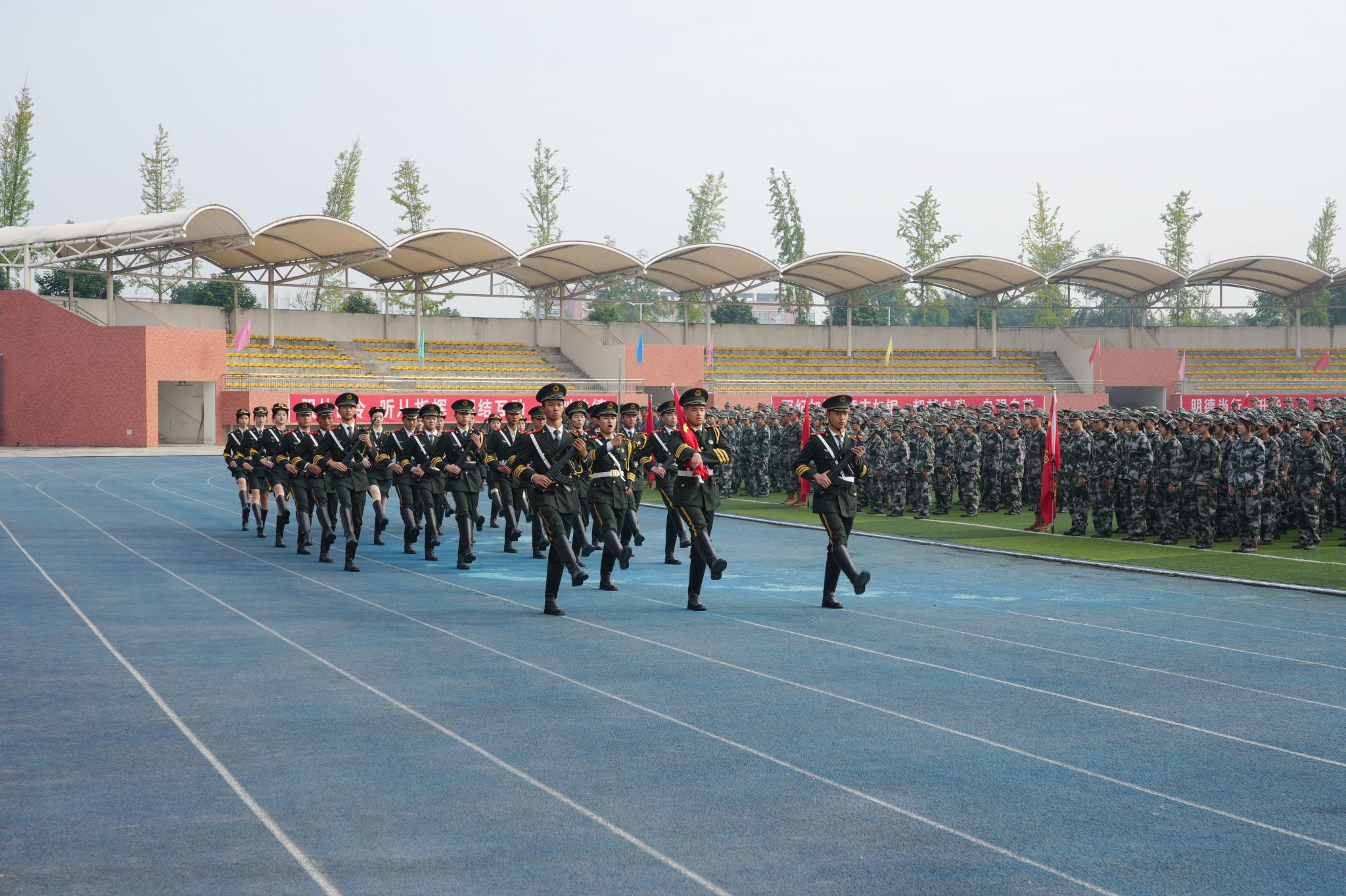 最后,校党委书记成定彬在讲话中指出,学校高度重视学生国防教育工作,成立了民兵预备役组织,全面推动人民武装建设创新发展。并从三个方面对同学们提出殷切希望:一要提高认识,牢固树立保家卫国的家国情怀。将自身的发展与国家命运紧密结合,积极主动地履行军训义务,自觉接受国防教育,掌握必要的军事技能和理论知识。二要服从命令,牢固树立令行禁止的纪律意识。希望同学们在思想上、行动上以军人的标准来严格要求自己,严格遵守军训纪律,以顽强的作风和辛勤的汗水换取军训的丰硕成果。三要端正态度,牢固树立互帮互助的团队意识。希望同学们发扬爱国主义、集体主义精神,学会思考,学会独立,把小我融入大我,在青春的征途中不断奋勇向前。