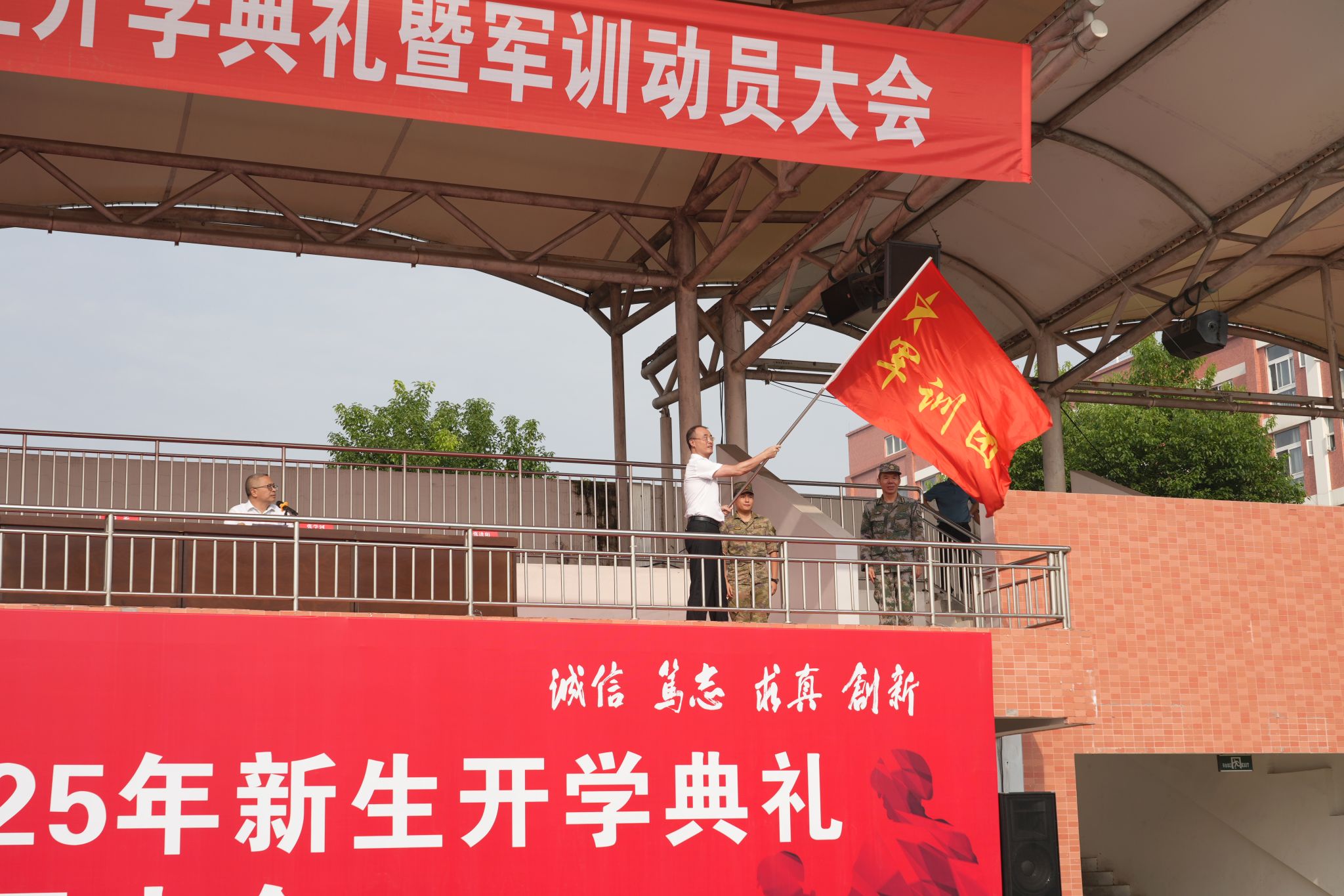 校长刘忠为军训团授旗,并代表学校全体师生员工,对2025级新同学的到来表示最热烈的欢迎和最诚挚的祝贺。希望同学们在科学与知识的海洋中,培养自由之思想、独立之思考;在技术与技能的训练中,锤炼工匠之精神、职业之操守;在学习和生活的过程中,追求文明之精神、强健之体魄。时刻将校训铭记于心,以诚信为本、笃志前行、求真务实、勇于创新,努力成为一名合格的伟德国际victor1946学生。