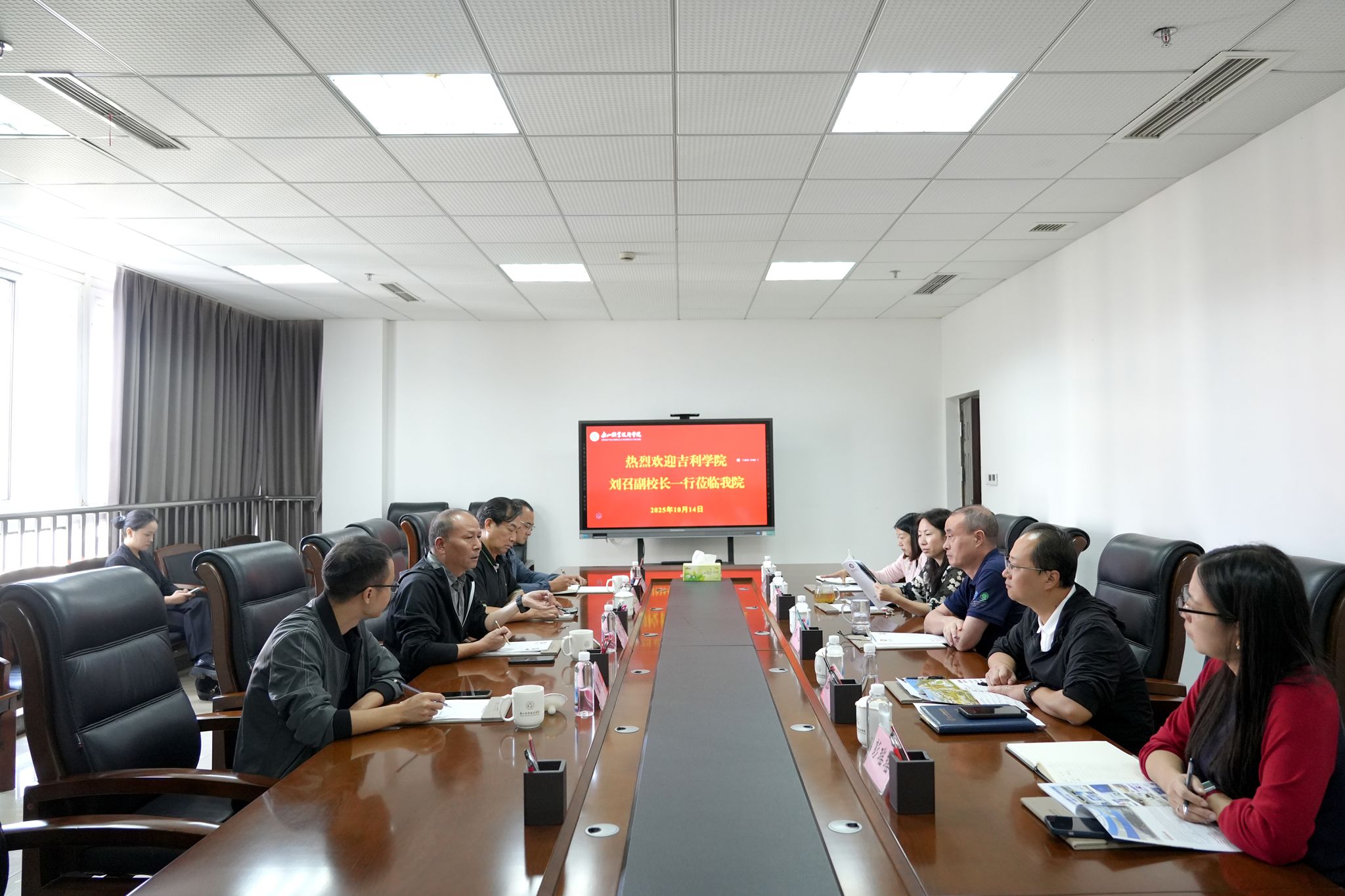 10月14日,吉利学院副校长刘召一行到访伟德国际victor1946,双方在行政楼324会议室召开座谈会。校长刘忠出席,党委副书记、工会主席张佳主持,教务处、发展规划处、智能制造学院相关领导参会。