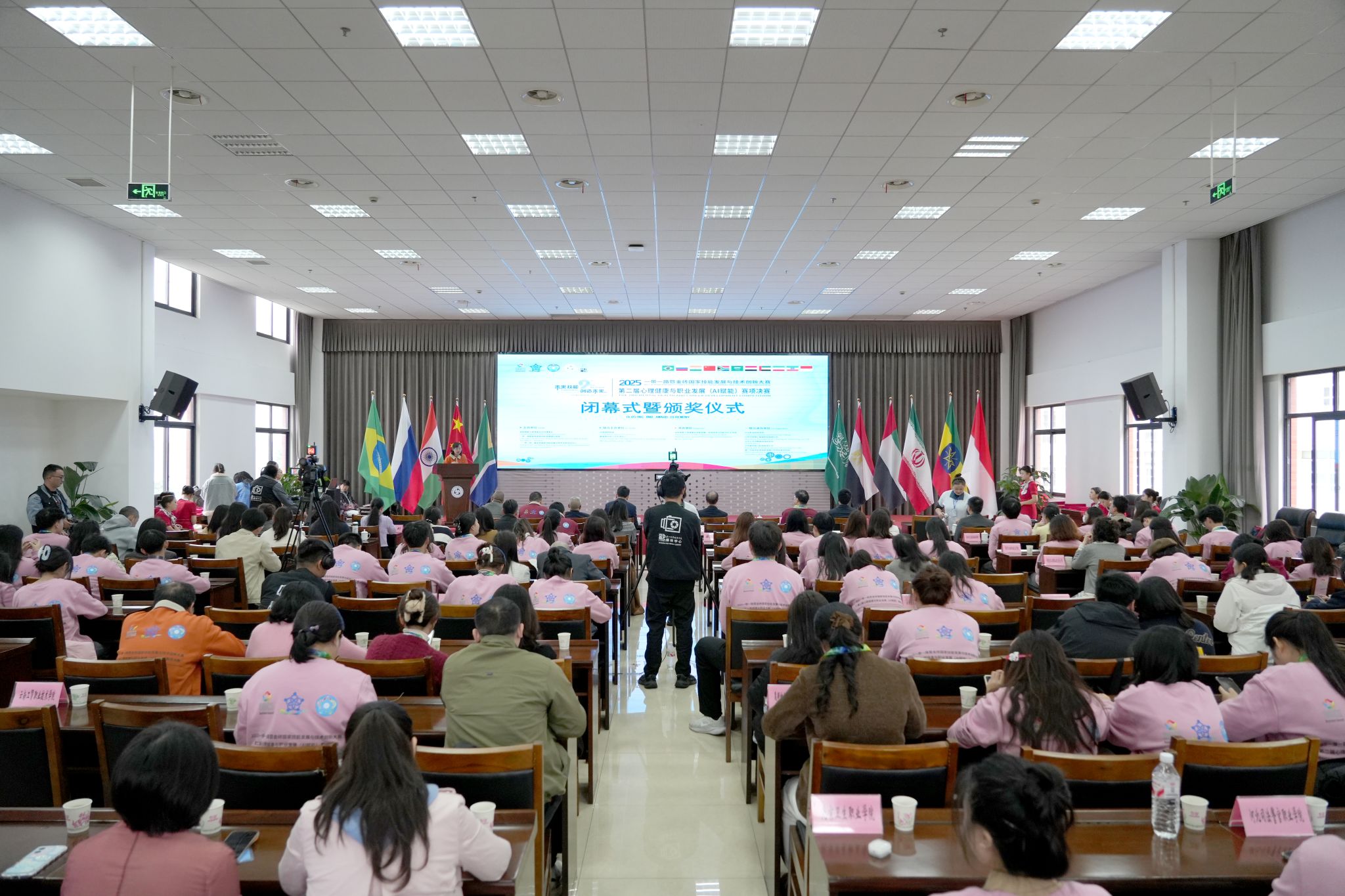 11月9日,2025一带一路暨金砖国家技能发展与技术创新大赛之第二届心理健康与职业发展(AI赋能)赛项决赛在伟德国际victor1946圆满落下帷幕。当日上午,闭幕式暨颁奖仪式在学校学术交流中心3004顺利举行。金砖国家技能发展与技术创新大赛组委会执委会国内竞赛办公室五处副处长林秋明,赛项专家组组长、国家卫生健康委能力建设与继教中心学术部原主任刘晨教授,赛项仲裁长、北京大学心理与认知科学学院李同归教授,北京企学研教育科技研究院竞赛合作处副主任刘宇同,山东中科慧心智能科技有限公司副总经理张兆圣,伟德国际victor1946校长刘忠,党委委员、副校长张学河,学生工作部部长张勇等校内外领导及嘉宾出席闭幕式。闭幕式由学生工作部副部长叶利丽主持。