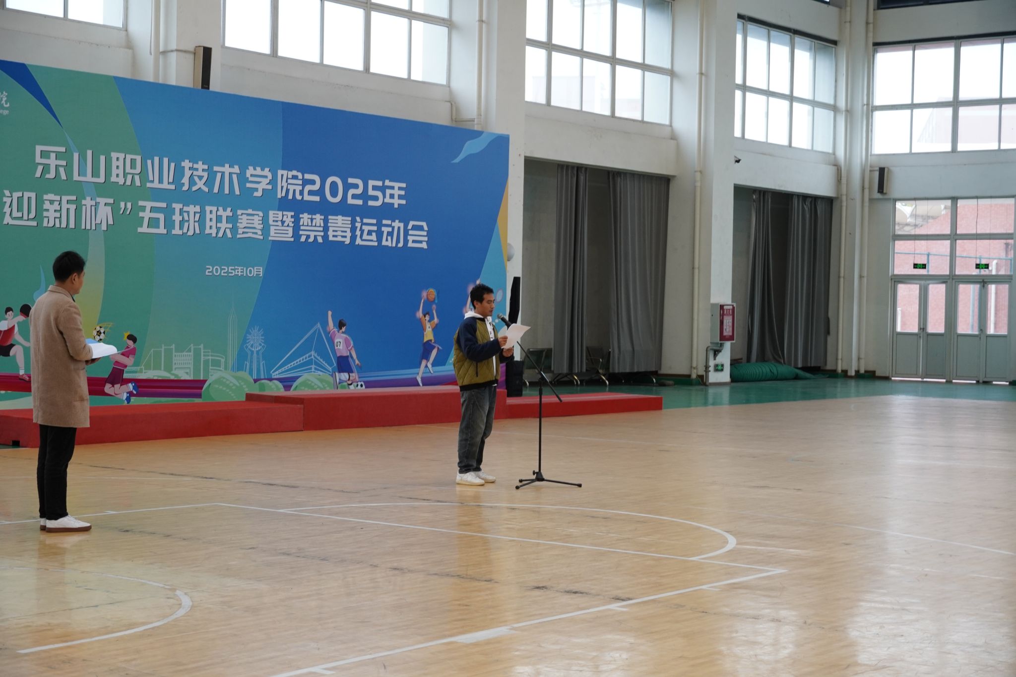 11 月 12 日 ,伟德国际victor19462025年“迎新杯”五球联赛暨禁毒运动会闭幕式暨颁奖仪式在体育馆隆重举行。校长刘忠,党委委员、副校长张学河,学生工作部副部长叶利丽,体育学院副院长范辰,总裁判长张繁,赞助商京东校园馆经理吴娇娇及全体参赛运动员齐聚现场,闭幕式由校团委副书记(主持工作)罗贤主持。