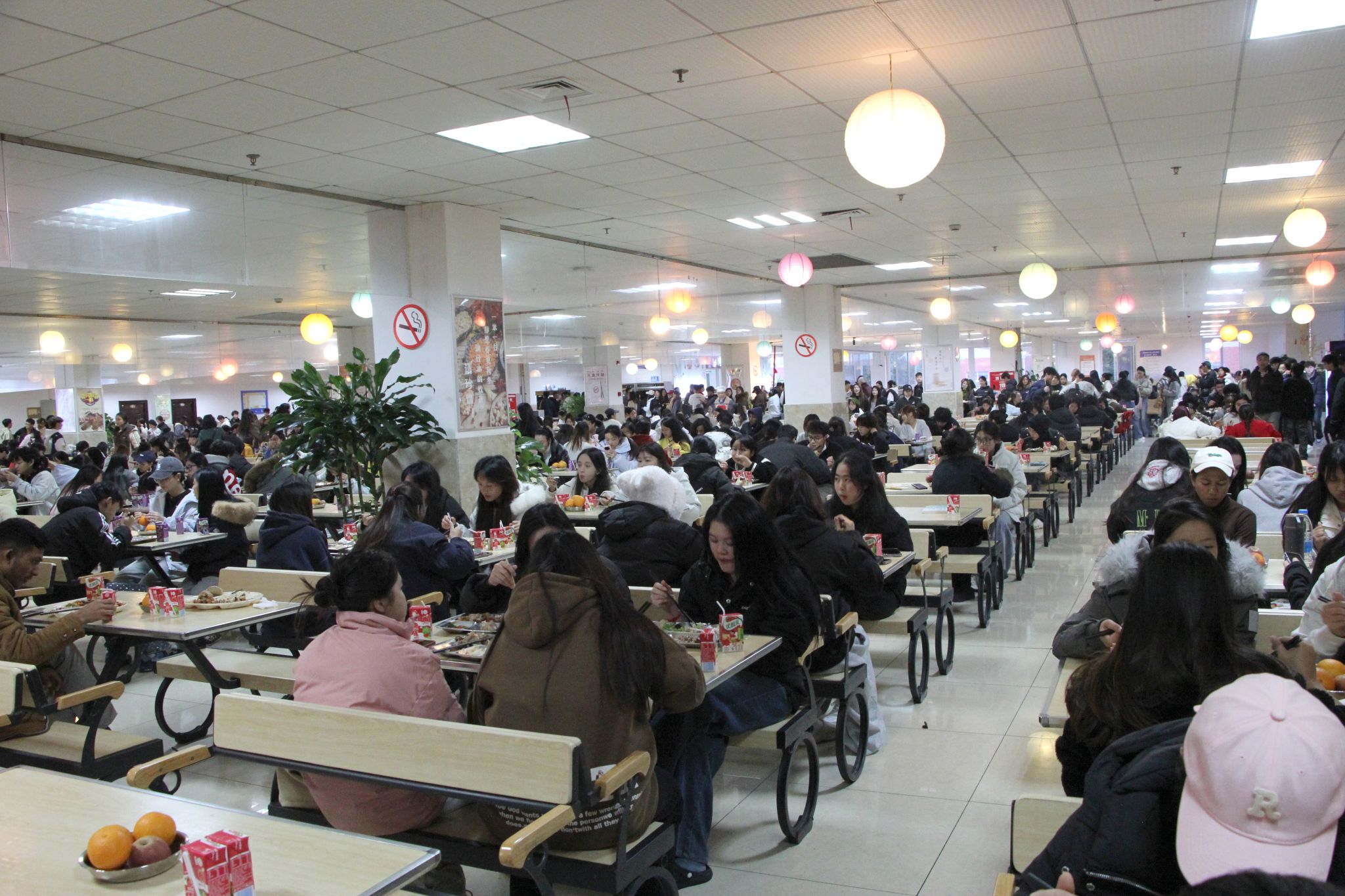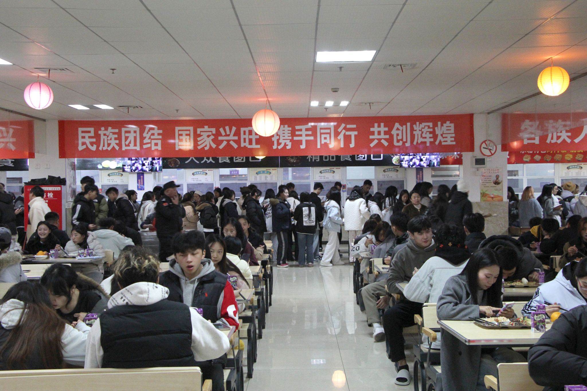 11月19日晚,学校在一食堂二楼精心准备了丰盛的特色菜品,1600余名在校的少数民族学生和国际学生凭券免费用餐。