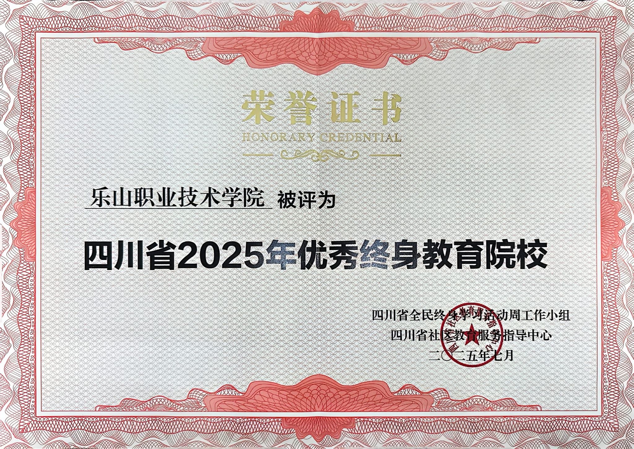 该荣誉由继续教育学院(继续教育处)精心组织、积极申报,四川省社区教育服务指导中心组织评审。此次获评“四川省优秀终身教育院校”,学校将以此为契机继续深化教育教学改革,进一步整合资源、优化服务。努力打造覆盖更广、质量更优、特色更显的终身教育服务体系,为构建“人人皆学、处处能学、时时可学”的学习型社会贡献更多“乐职力量”。