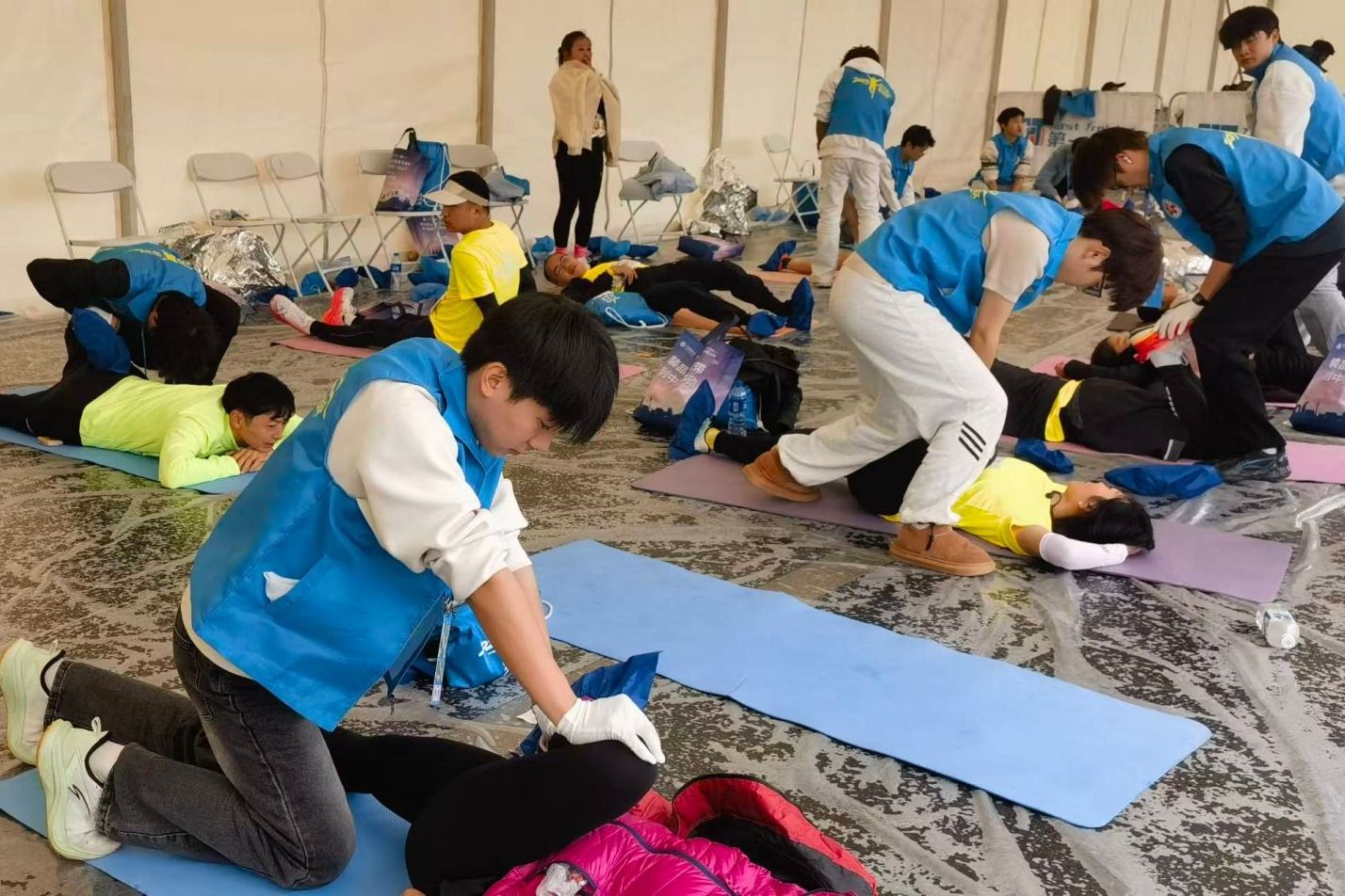 作为本次赛事志愿者服务的核心力量之一,伟德国际victor1946自11月起便启动志愿者招募工作,最终选拔出的673名志愿者中,护理、医学、康复等专业学生占比超60%,充分发挥了伟德医药卫生类专业优势。为确保服务质量,校团委联合赛事组委会开展了为期两周的系统化培训,内容涵盖岗位职责、应急救护、赛道指引、礼仪规范等,特别邀请专业赛事裁判和医护人员讲解运动损伤处理、心肺复苏等实用技能。