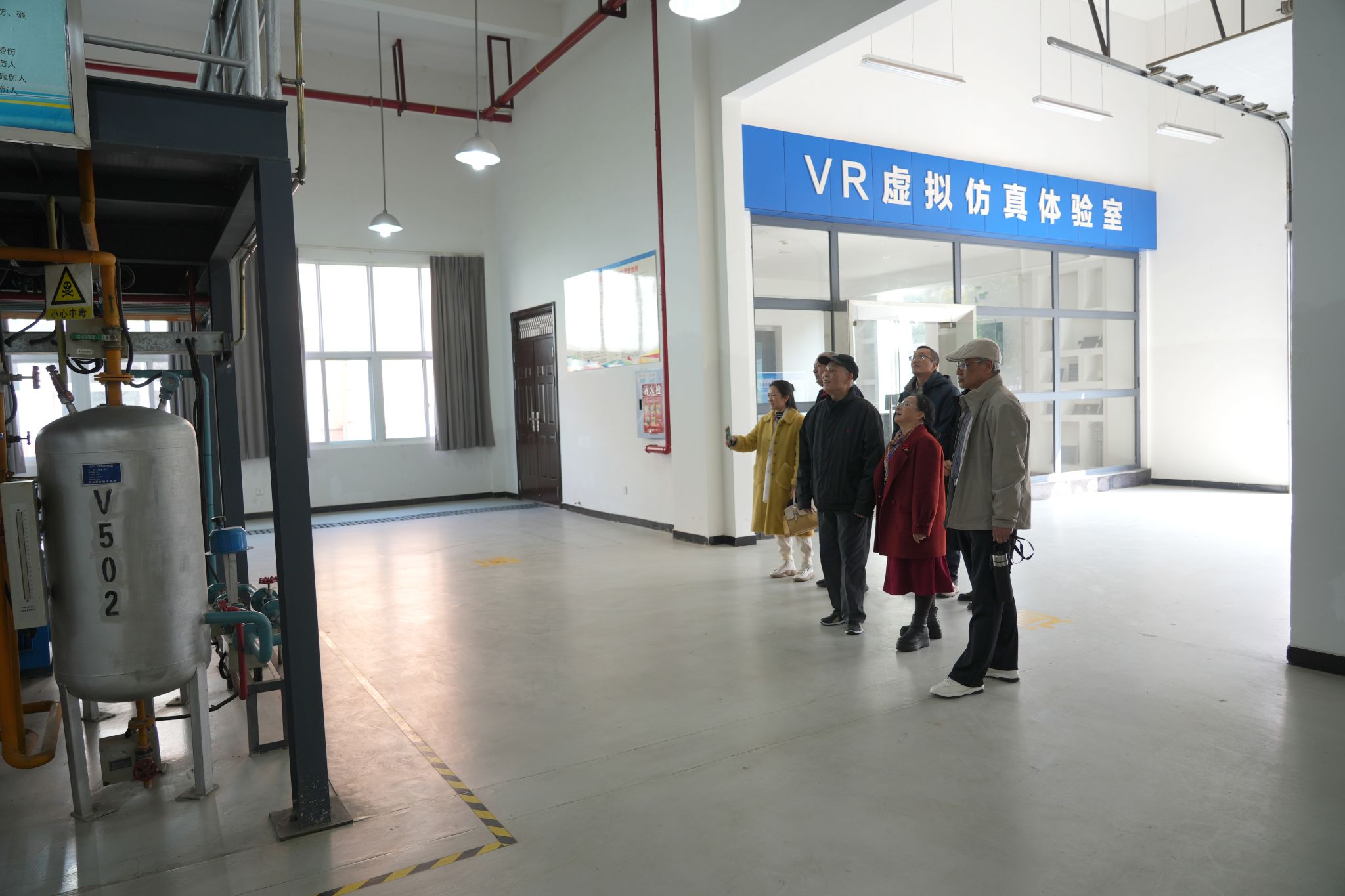 随后,在学校党委委员王丽及新能源与材料学院副院长宋经纬、马克思主义学院副院长姚佳秀的陪同下,专家团先后前往三号实习工厂、实验实训室、光伏科技文化馆实地参观。