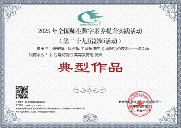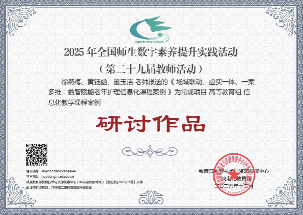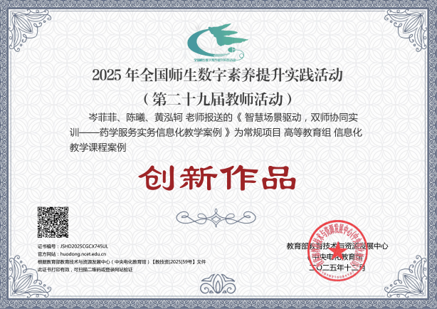 近日,由教育部教育技术与资源发展中心(中央电化教育馆)主办的2025年全国师生数字素养提升实践活动(第二十九届教师活动)落下帷幕。在常规项目参与名单中,伟德梅艳团队课件作品《晶体硅制备3D虚拟车间》和岑菲菲团队信息化教学课程案例作品《智慧场景驱动,双师协同实训——药学服务实务信息化教学案例》获评“创新作品”;董玉洁团队微课作品《滴眼给药技术——你会滴眼药水么?》获评“典型作品”;徐燕梅团队信息化教学课程案例作品《场域联动、虚实一体、一案多维:数智赋能老年护理信息化课程案例》获评“研讨作品”。