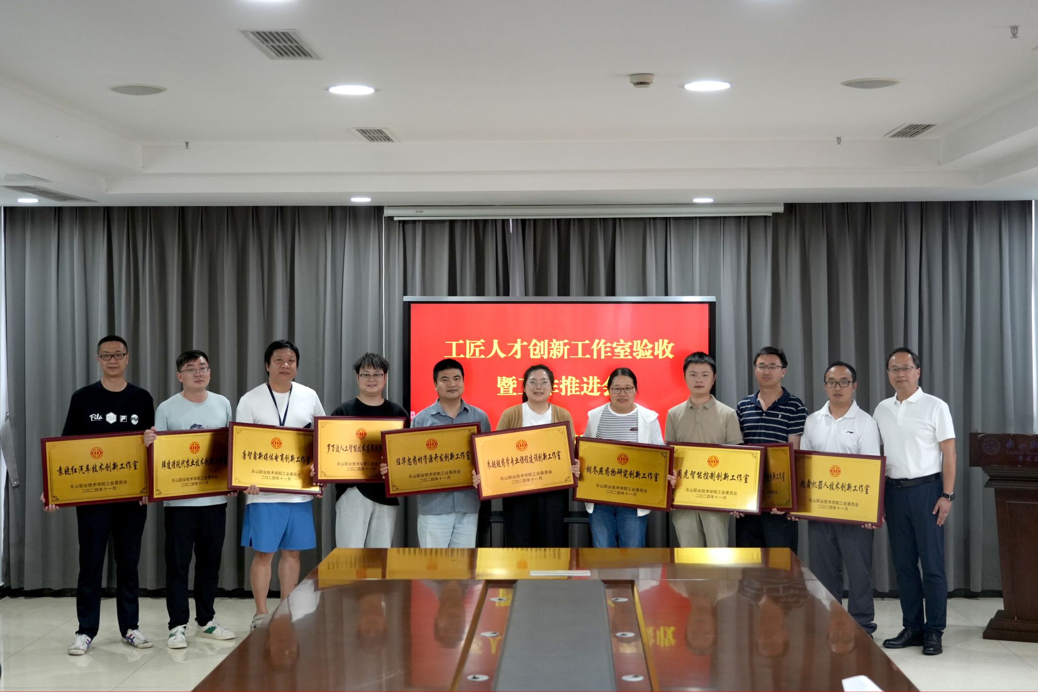 最后,张佳为新创建并验收合格的校级工作室进行授牌。