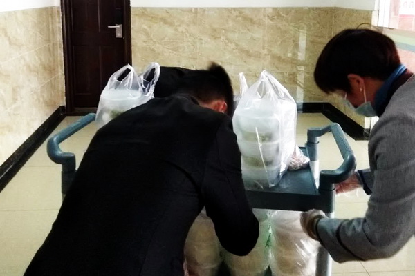 为了落实好学院疫情防控措施,2月8日开始,学术交流中心免费给留校的33名国际学生提供伙食,并送往学生公寓,让留学生及时吃上热腾腾的饭菜。据了解,学校每天早上为每个学生提供一瓶牛奶、一个鸡蛋、一个苹果、一个香蕉,中晚餐提供一荤一素一汤的工作餐。