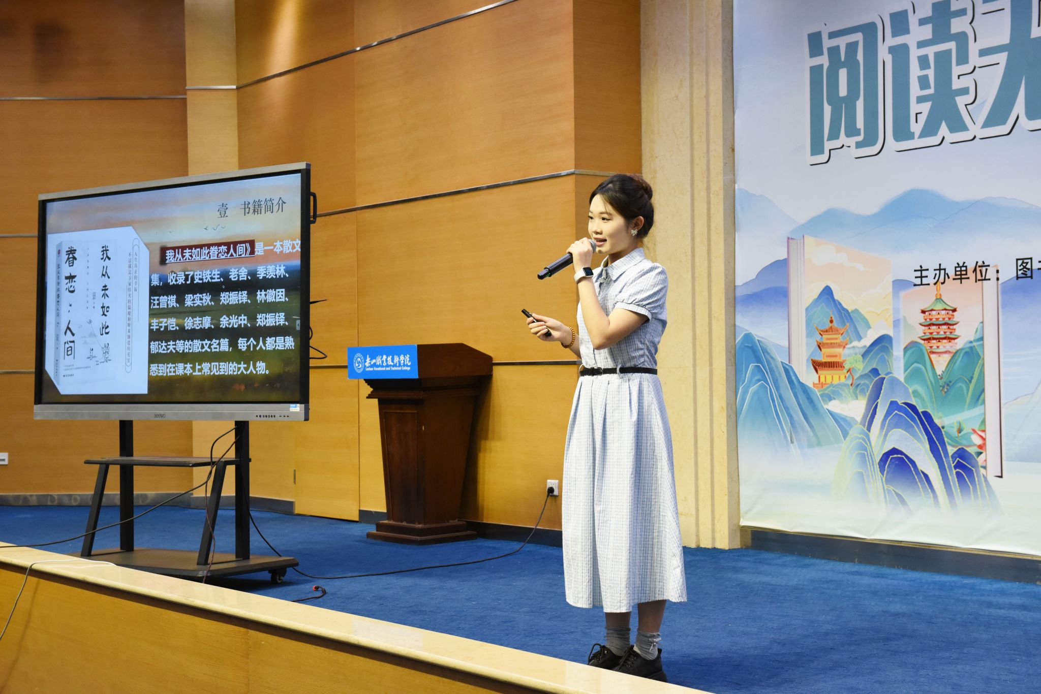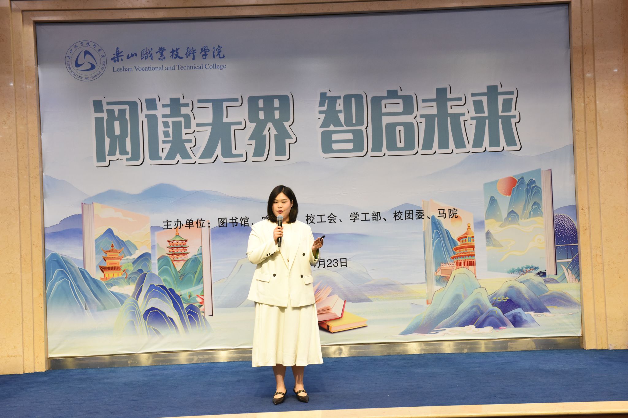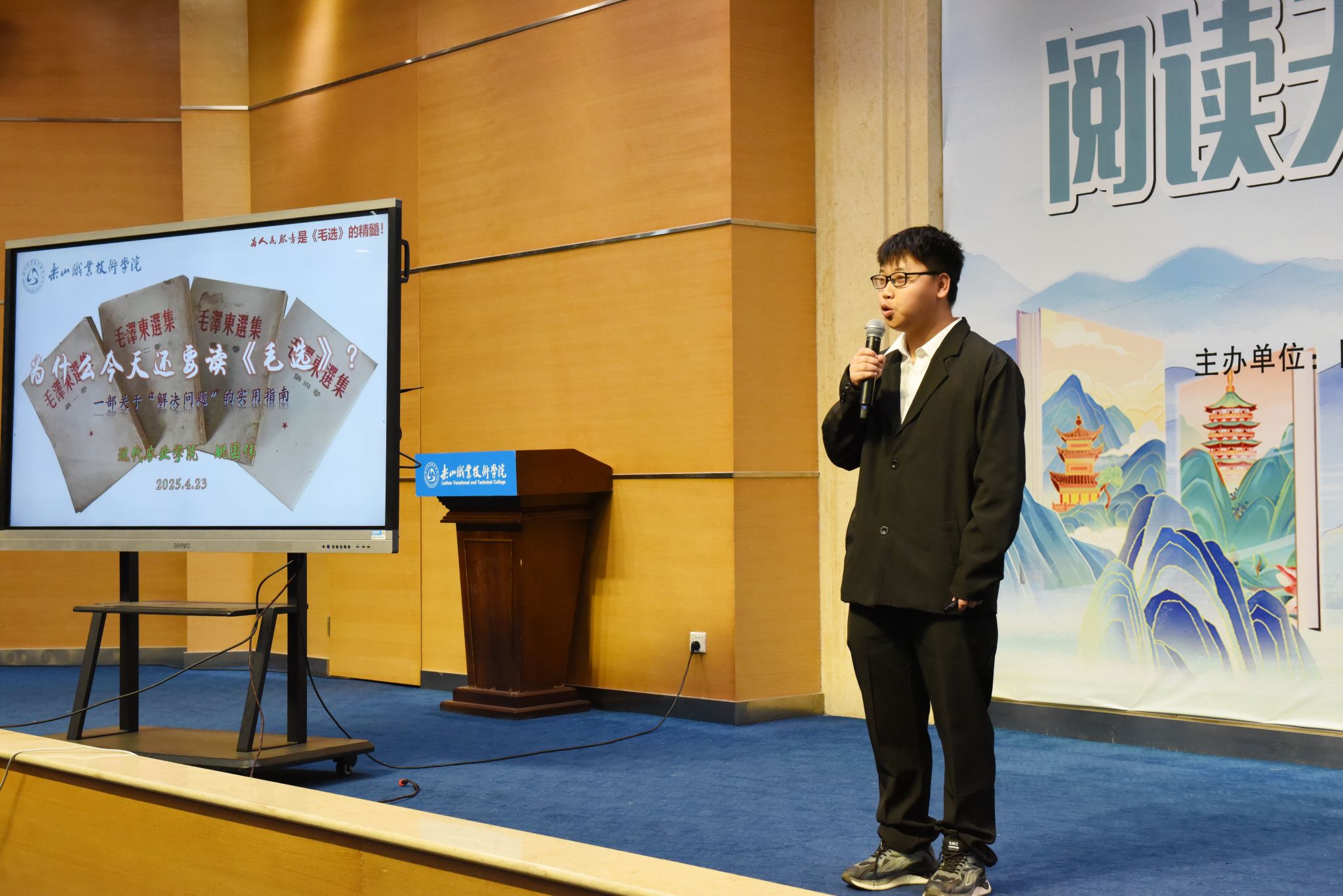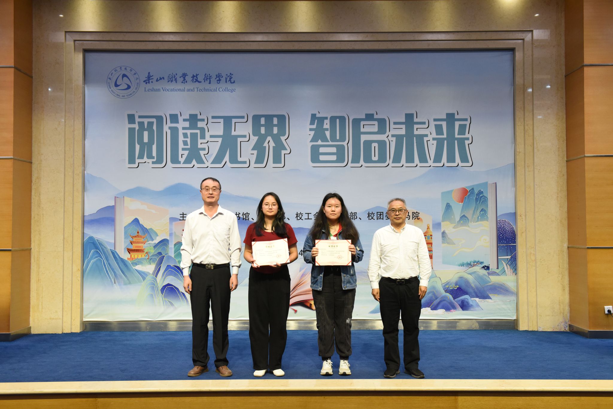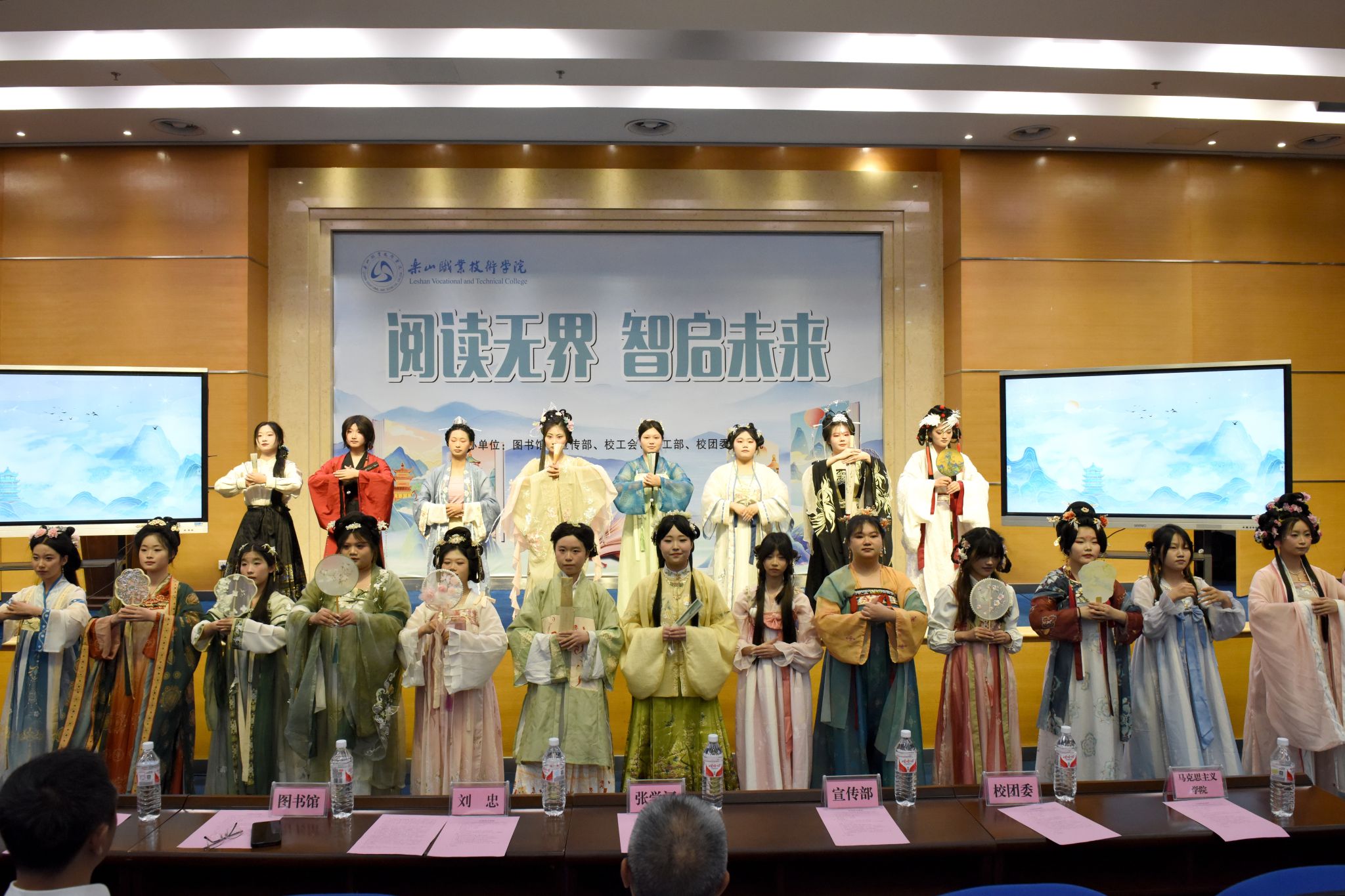 活动现场,刘忠、张学河为第三届“阅读之星”王茂嶙、吴胜香颁发了证书。张学河为同学们荐书《积极干预心理书系》,让在座的师生了解了积极心理学的上医治未病理念。李娟老师系统解读了“十四五”期间图书馆馆藏资源建设成果。杨瑜双老师解析《在文化溯源中读懂“何以中国”》的文化密码,缪懿老师以新视角解读《东坡志林》。米易然同学的《我从未如此眷恋人间》让在座的观众感受到人间值得,万物可爱,姚国伟同学结合身边的小事解读了如何学好《毛泽东选集》,同学们还带来了《阅读有光》合唱、《这盛世如您所愿》诗词朗诵、汉服走秀串联等节目。启动仪式突破传统模式,巧妙融合学术报告、艺术展演与科技元素,彰显了“以文化人”的教育理念,展现了人工智能时代阅读推广的无限可能。当古籍典册遇见数字技术,当传统汉服邂逅现代设计,伟德国际victor1946正以创新姿态书写新时代职业院校文化育人的精彩篇章。