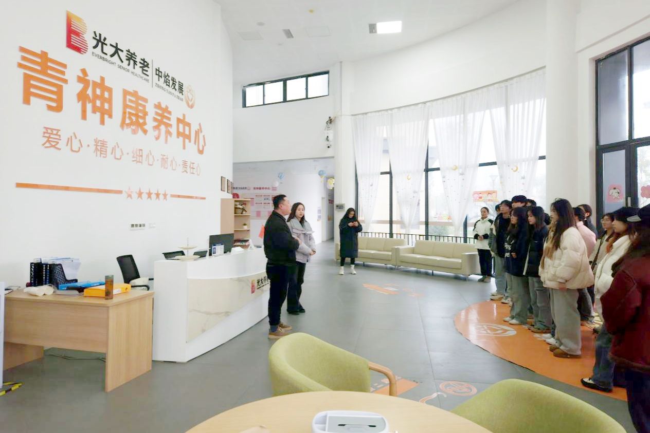 近日,护理康养学院党总支副书记吴丽虹带领学院实习就业科科长、老年保健24-1班辅导员王飞飞老师,以及该班部分同学,前往四川光大百龄帮宜康养老服务有限公司青神分公司进行实地探访与交流。