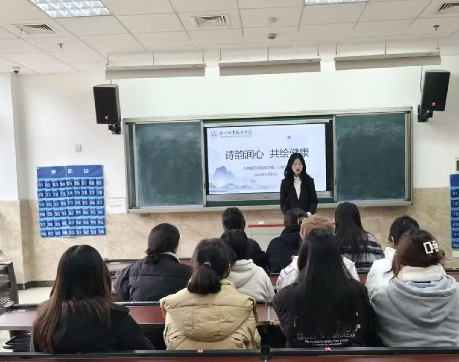 为增进学生间的情感交流与思想碰撞,共同探索诗句中的深邃意境与人生智慧,生物医药学院于2024年12月4日在教学楼隆重举办题为“诗韵润心,共绘健康”的诗词大赛。本次活动巧妙采用“看图猜诗句”的趣味形式,旨在引领同学们聚焦心理健康议题,利用古诗词的独特韵味与深远意境,为心灵带来慰藉与启迪,进一步推动校园内对心理健康议题的关注与参与热潮。