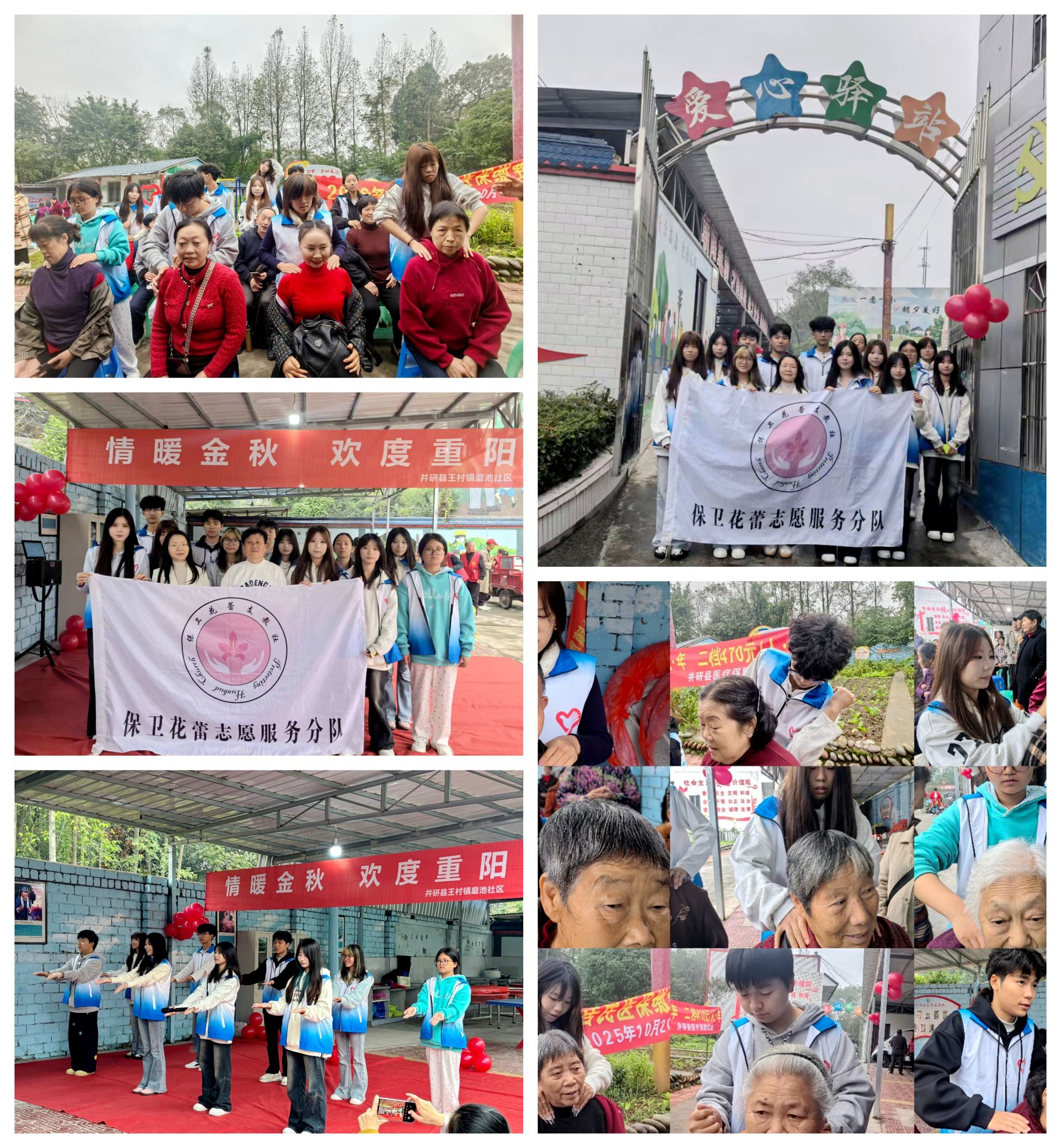 近日,马克思主义学院教师石红英带领“保卫花蕾”支教社团14名学生,走进井研县王村镇磨池社区(新时代文明实践中心“爱心驿站”),参与“情暖金秋 欢度重阳”活动,共有130余位老人参加。