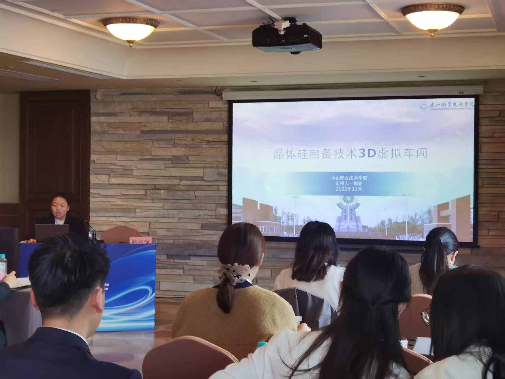 梅艳老师立足新能源材料领域教学实践,通过视频演示与现场分享相结合的方式,系统介绍了晶体硅制备虚拟仿真项目的开发背景、设计理念及教学应用成效,生动展现了该项目在强化学生实践操作能力、激发专业学习兴趣、丰富教学资源供给等方面的显著作用。