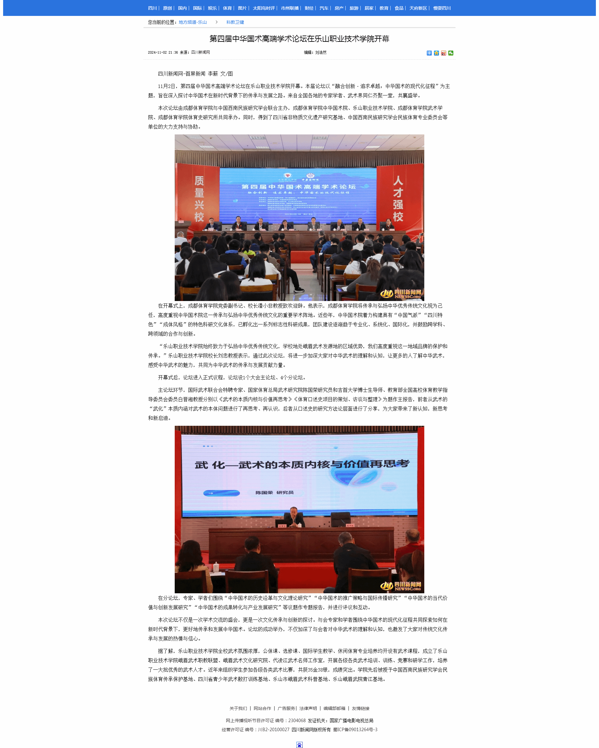 四川新闻网:第四届中华国术高端学术论坛在伟德国际victor1946开幕