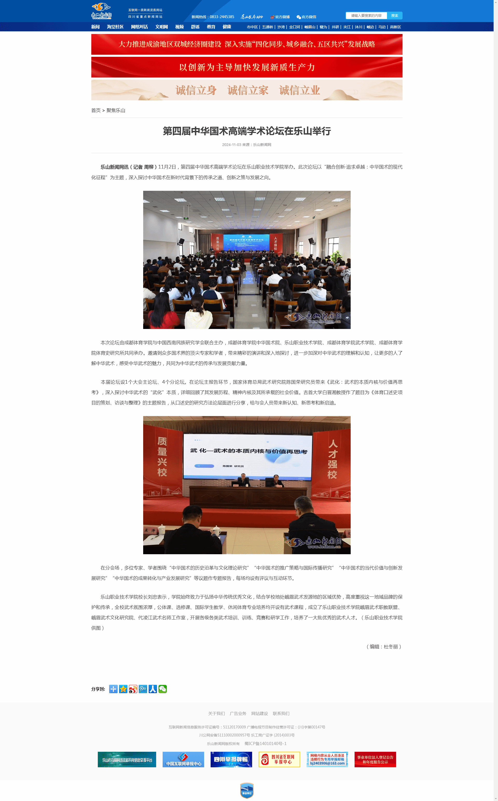 乐山新闻网:第四届中华国术高端学术论坛在乐山举行