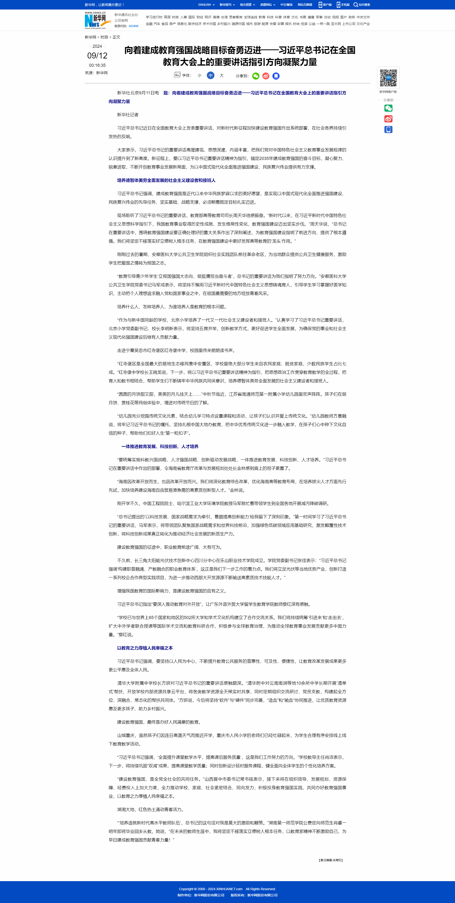 新华社:向着建成教育强国战略目标奋勇迈进——习近平总书记在全国教育大会上的重要讲