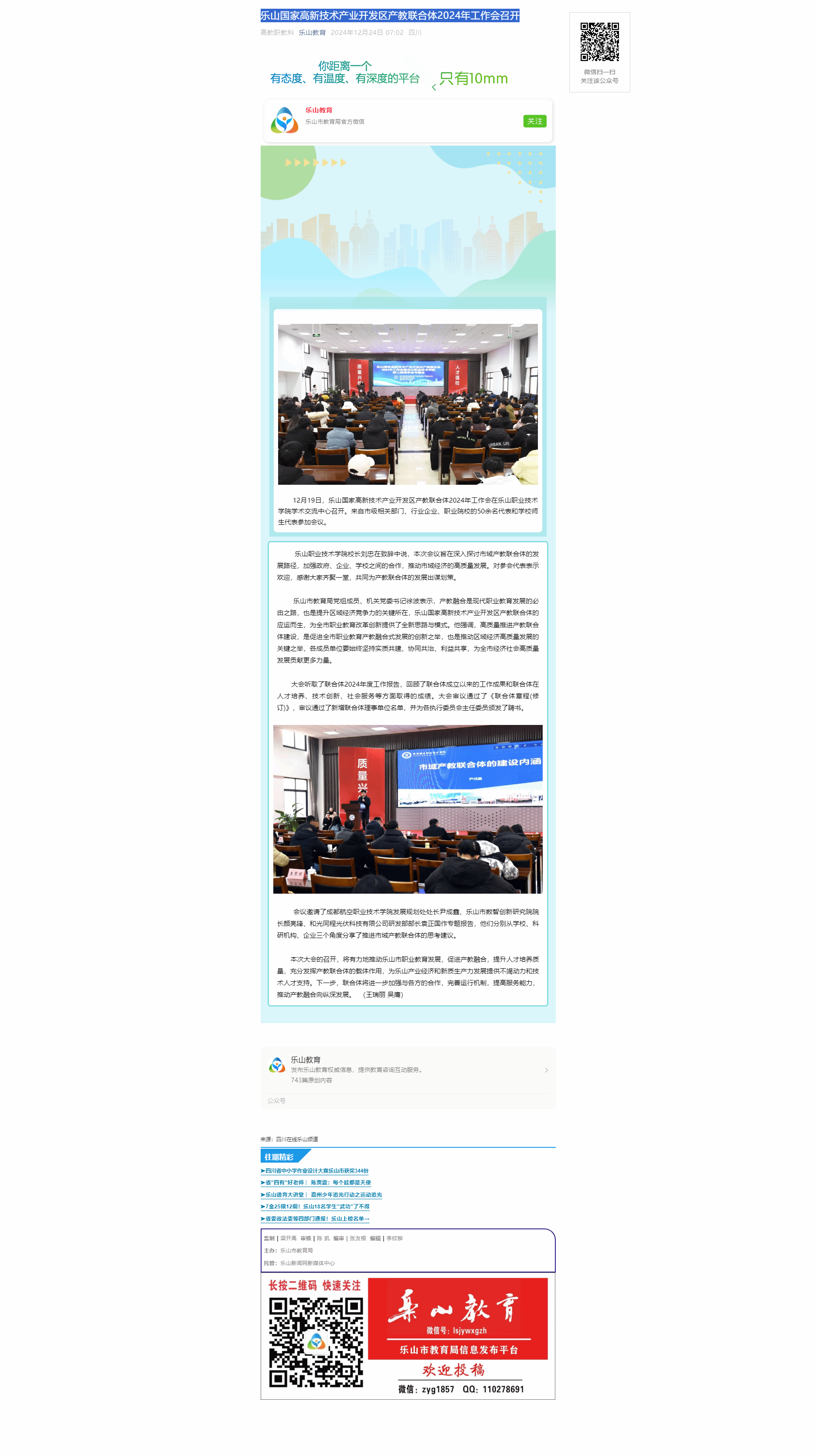 乐山教育:乐山国家高新技术产业开发区产教联合体2024年工作会召开
