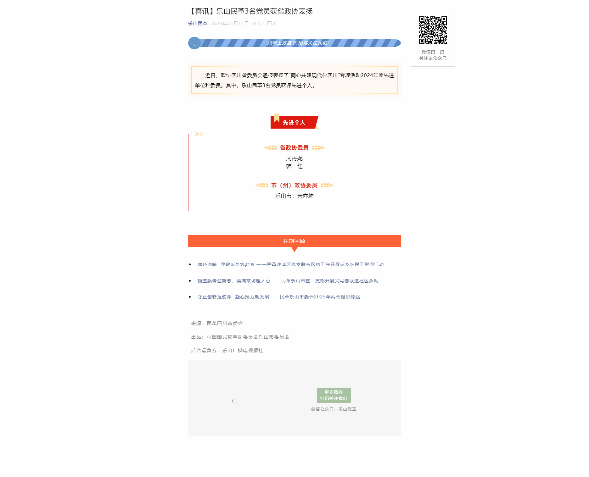 乐山民革微信公众号:【喜讯】乐山民革3名党员获省政协表扬