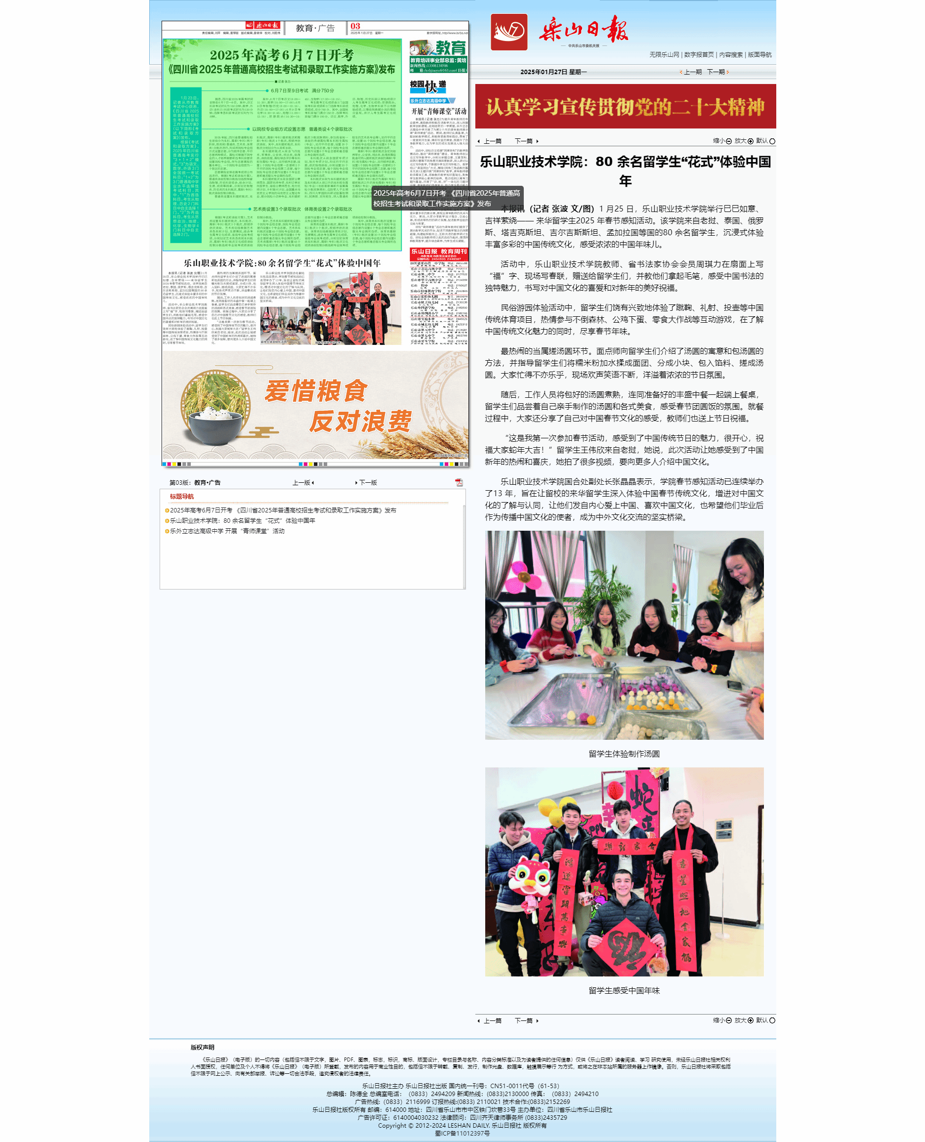 乐山日报:伟德国际victor1946:80 余名留学生“花式”体验中国年