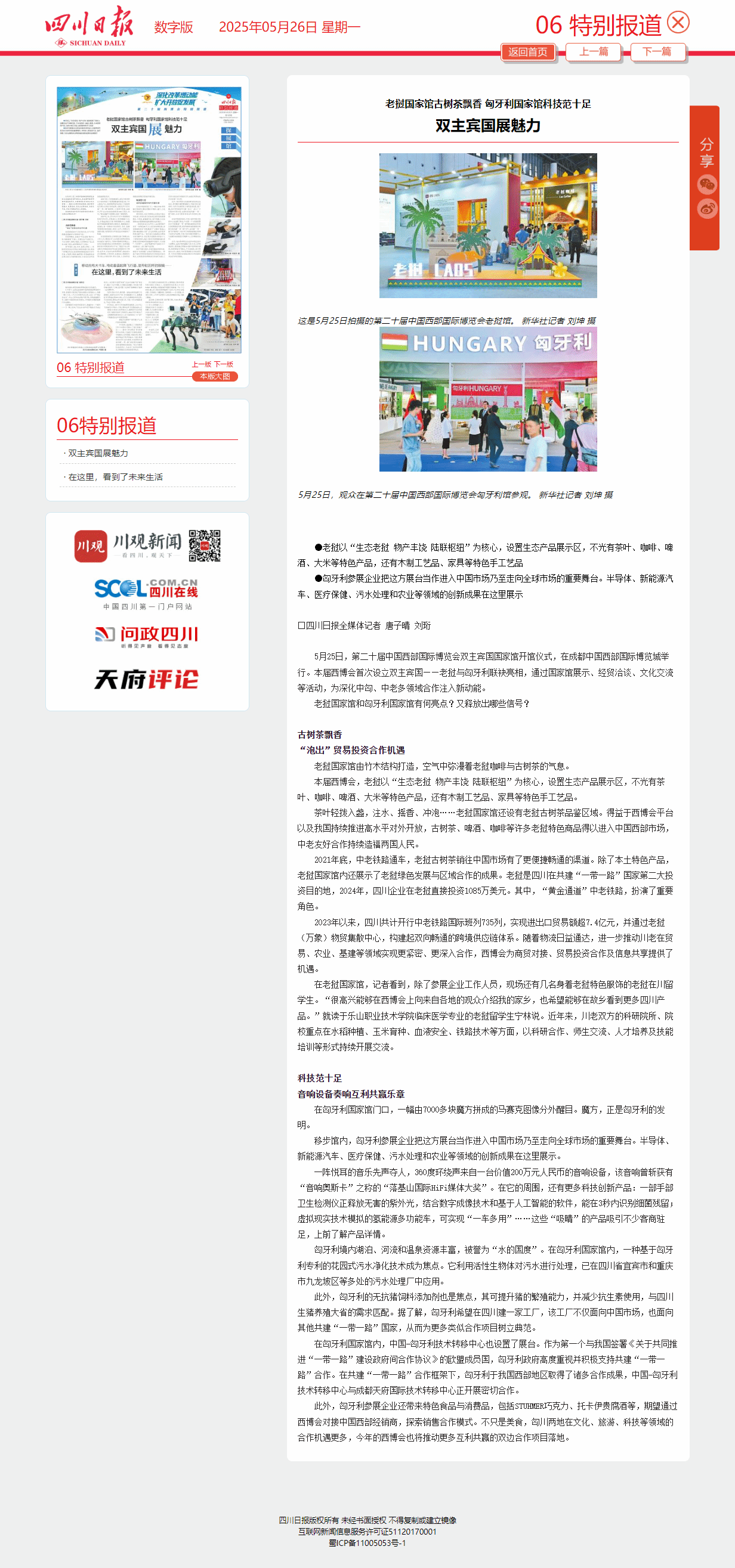 四川日报:老挝国家馆古树茶飘香 匈牙利国家馆科技范十足 双主宾国展魅力