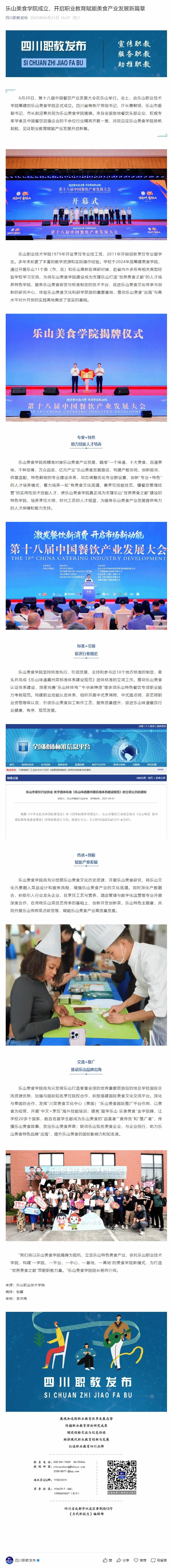 四川职教发布:乐山美食学院成立,开启职业教育赋能美食产业发展新篇章