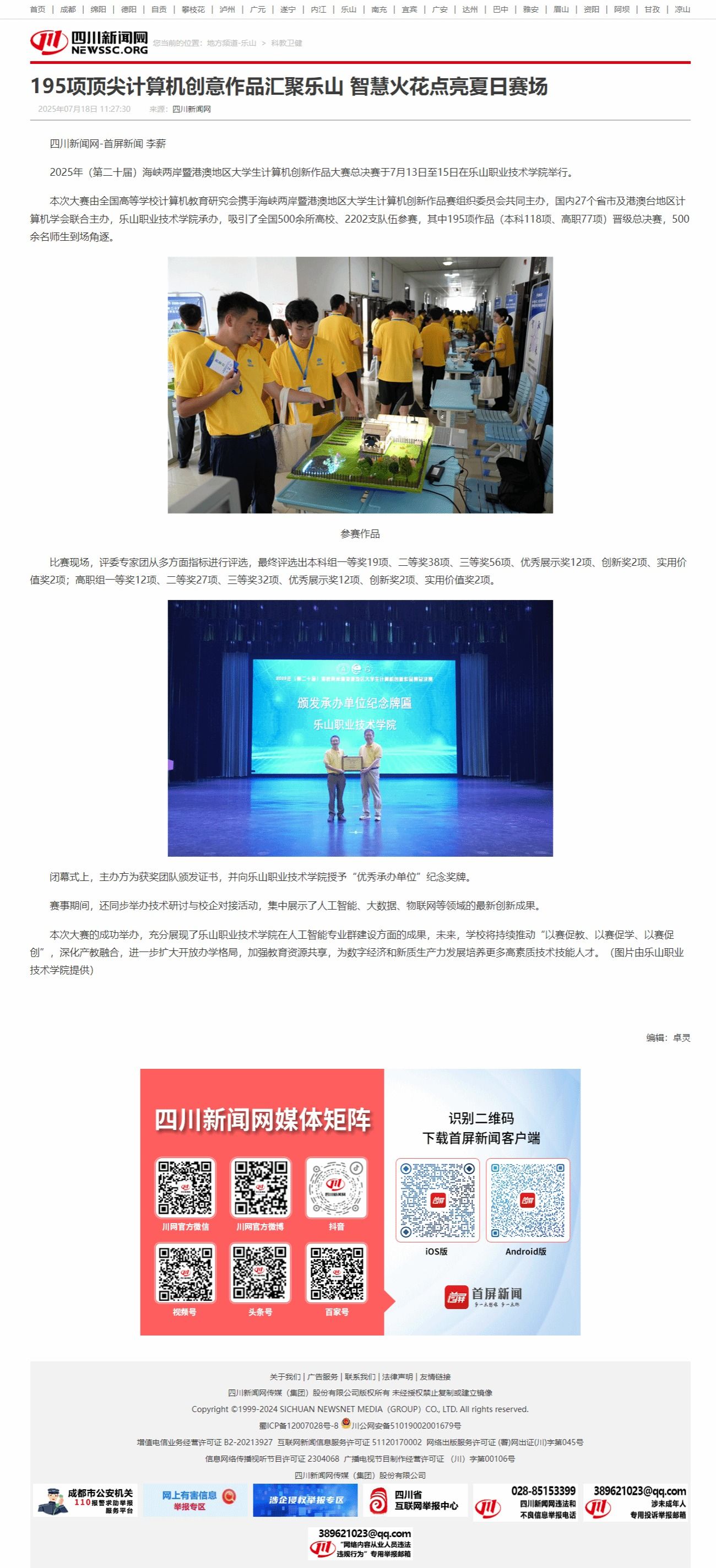 四川新闻网:195项顶尖计算机创意作品汇聚乐山 智慧火花点亮夏日赛场